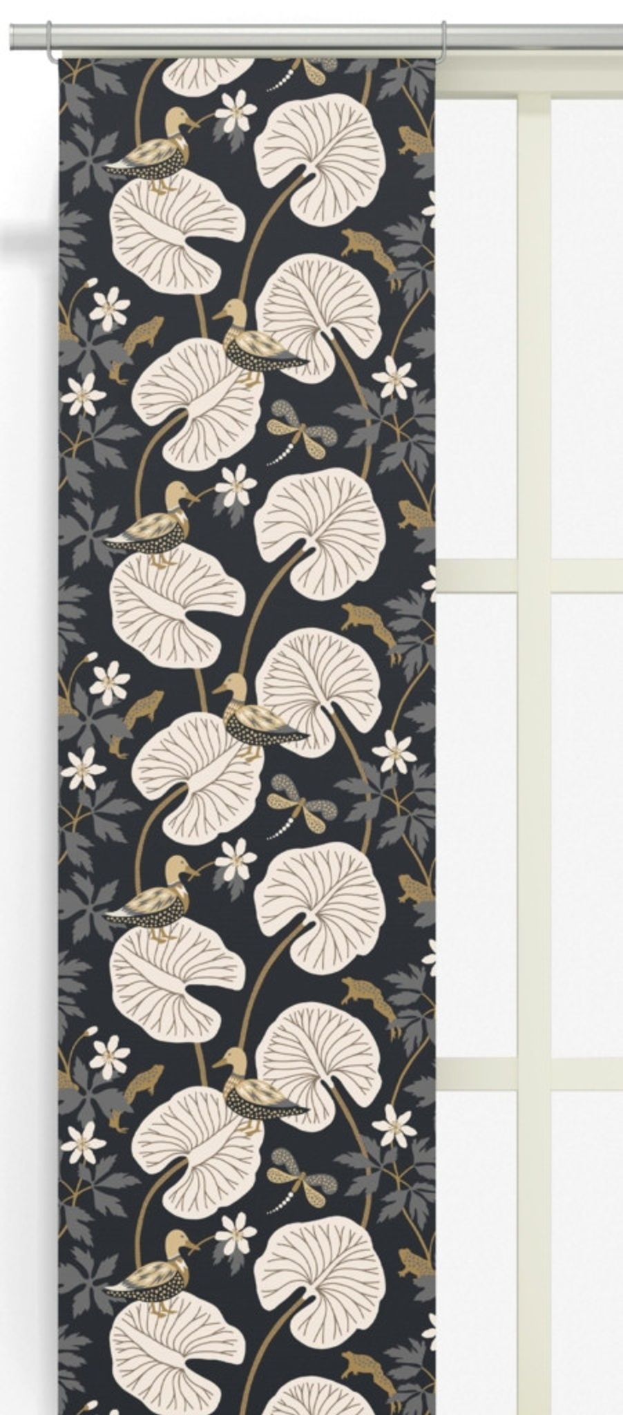 Kärrleken grå/guld panellängd 2-pack från Arvidssons Textil är två bomulls-paneler i ett stilfullt grått och guldmönster. Designad av Hanna Werning, ger de mjukt ljusinsläpp och ett lyxigt uttryck i fönstret. Perfekt som fönsterdekoration i vardagsrum, sovrum eller kök.