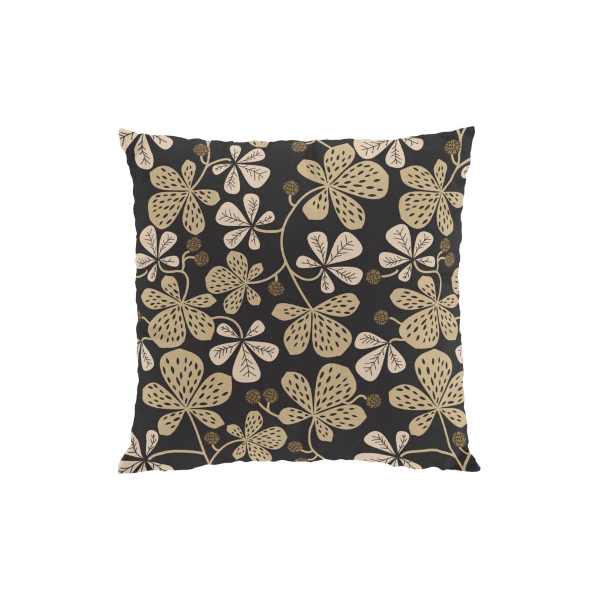 Kastanjer grå kuddfodral Arvidssons Textil är ett mjukt bomullsfodral som förhöjer vardagsrummets stil. Den mörkgrå bakgrunden omges av beige bladlika mönster, vilket ger ett naturnära uttryck som passar de flesta inredningsstilar. Pris under 499 kr.
