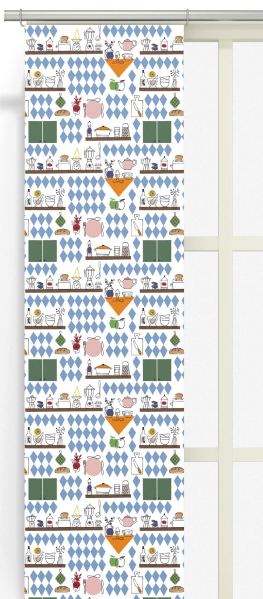 Köket blå/grön panelgardin i 2-pack från Arvidssons Textil ger köket en lekfull och stilren inramning. Gardinerna har ett blått och grönt panelmotiv som låter ljuset sippa igenom mjukt samtidigt som de skapar viss insynsskydd.