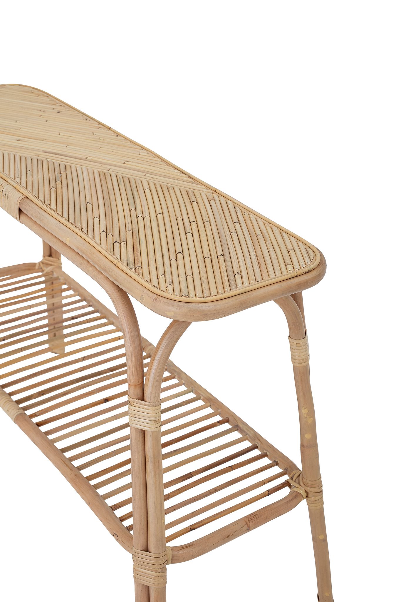Thenna-konsolbordet i naturfärgad rotting är ett lättplacerat konsolbord för din hall eller vardagsrum. Som hallmöbel eller avlastningsbord ger det en yta för nycklar, post, böcker eller dekorationer utan att ta mycket plats.
