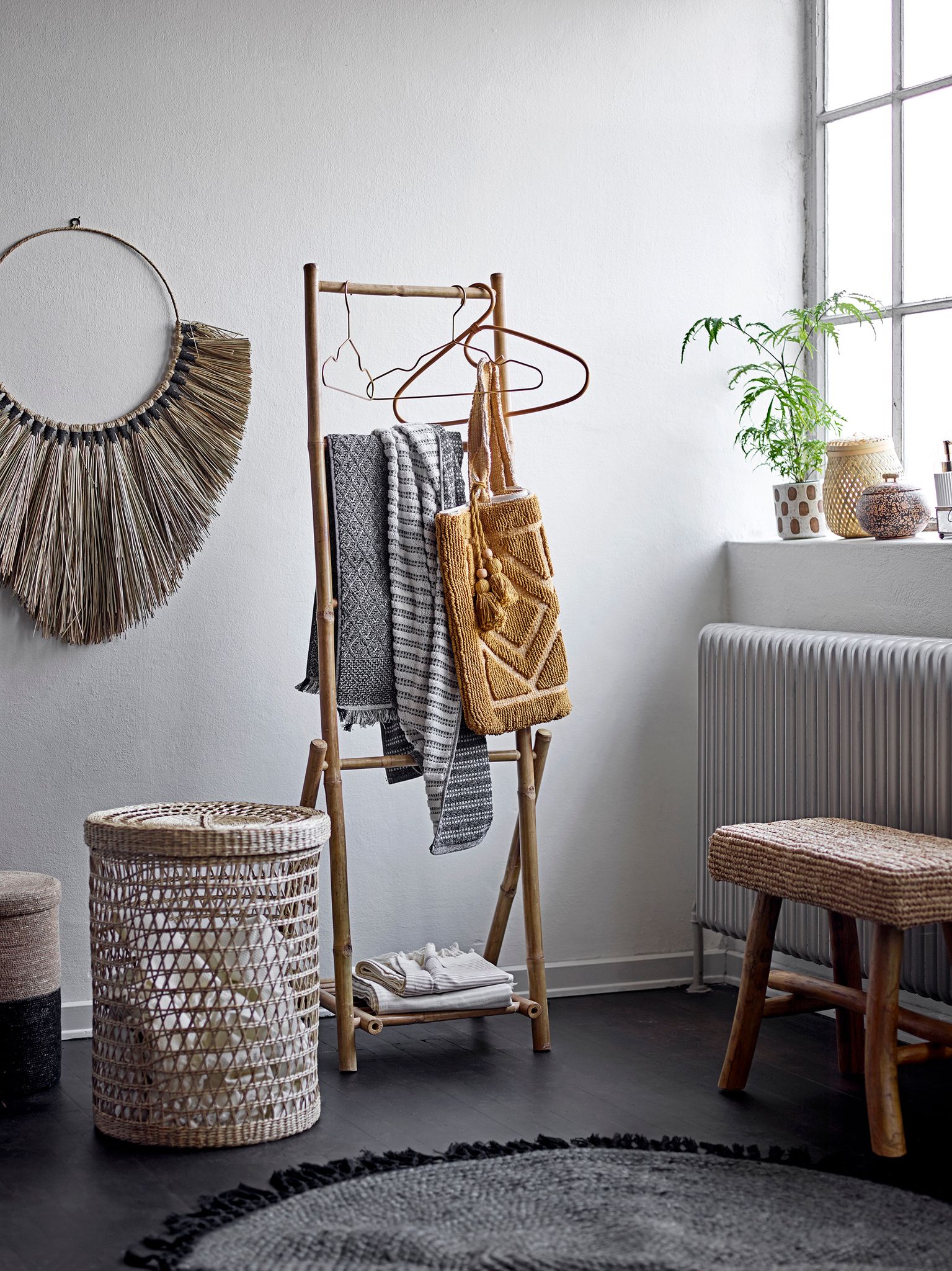 Handla varsamt — korgarna är handgjorda av naturligt material. Dammtorka med en torr trasa och undvik överdriven fukt. Endast för inomhusbruk.