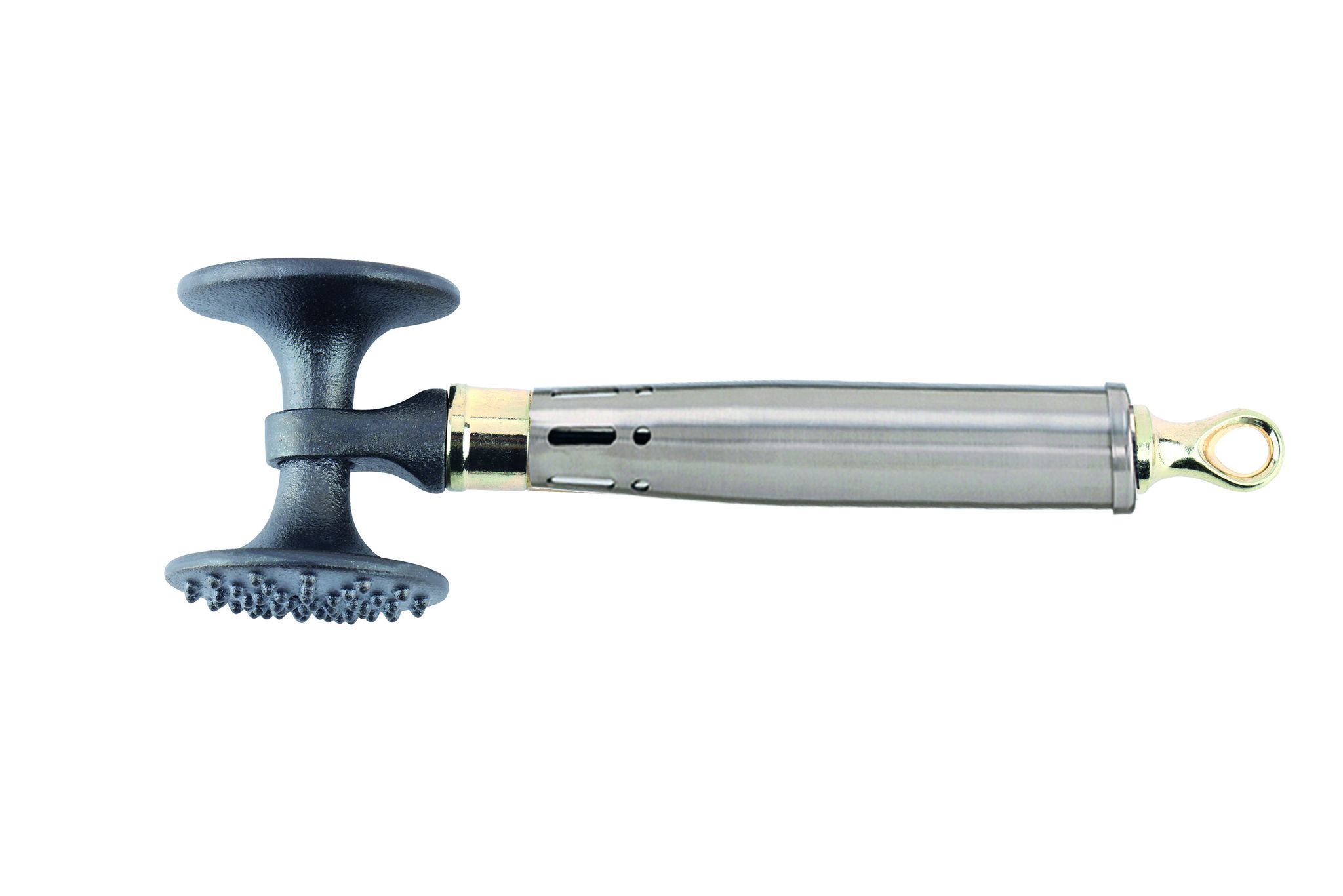 Upptäck Kötthammare i rostfritt stål från Ronneby Bruk, en oumbärlig köksredskap för alla köttälskare. Med sina två olika sidor – en platt och en med nabbar – är denna biffbultare perfekt för att öka mörheten i köttet och förbättra smaken.