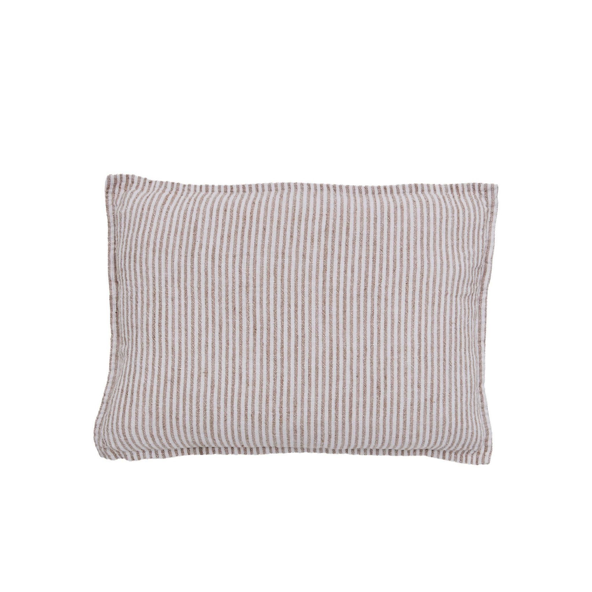 Den här handgjorda linnekudden i färgen tigeröga är en mjuk soff- eller fåtöljkudde som ger extra stöd när du kopplar av. Den unika, hantverksmässiga ytan gör att varje kudde skiljer sig åt och passar väl i vardagsrummet, läshörnan eller på sängen som en dekorativ hemtextil.