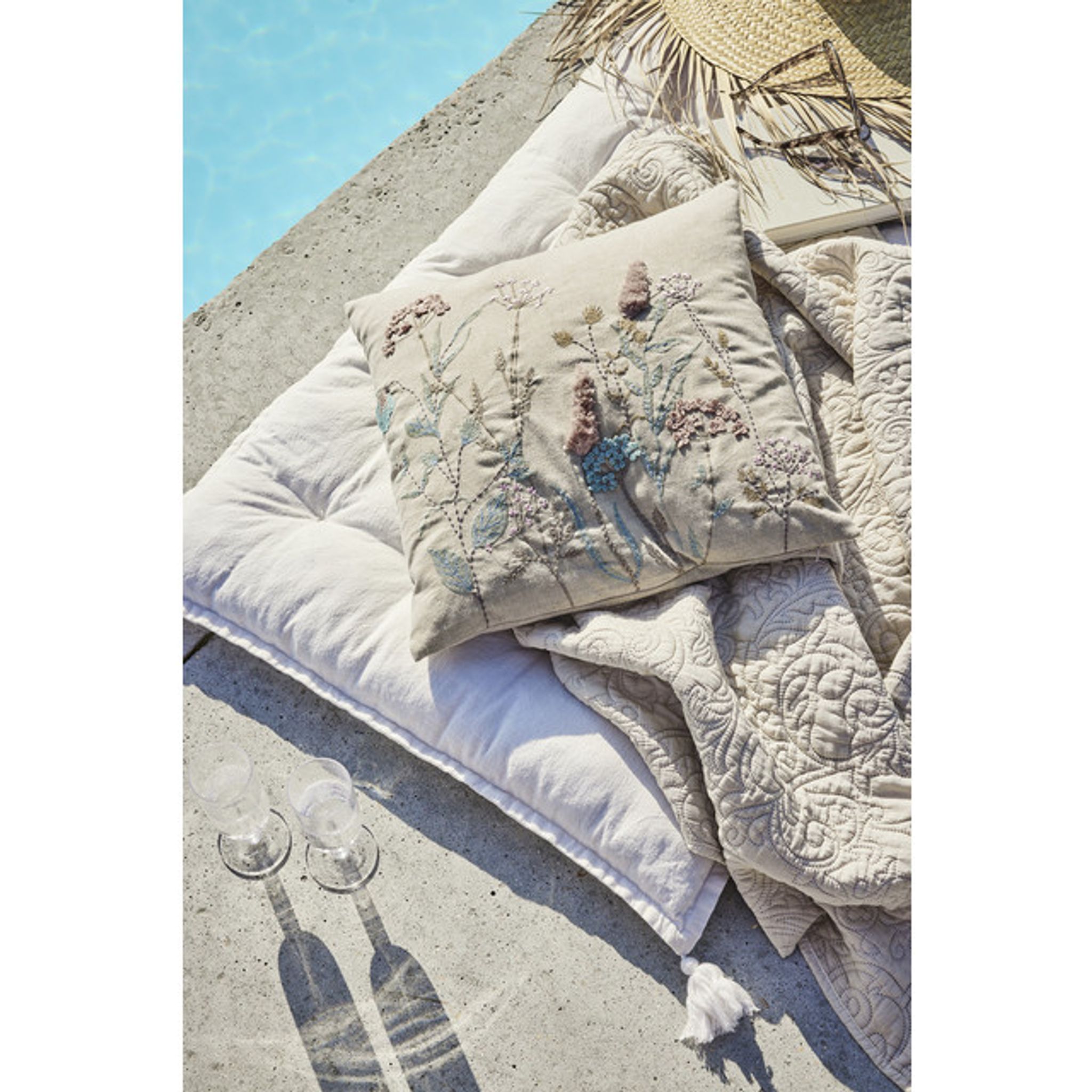 Den broderade bomullskudden från Lene Bjerre är en dekorativ och funktionell kudde som passar i vardagsrum, på sängen eller i fåtöljen. Den ger din inredning en tydlig detalj utan att ta över och gör sittplatsen mer inbjudande.