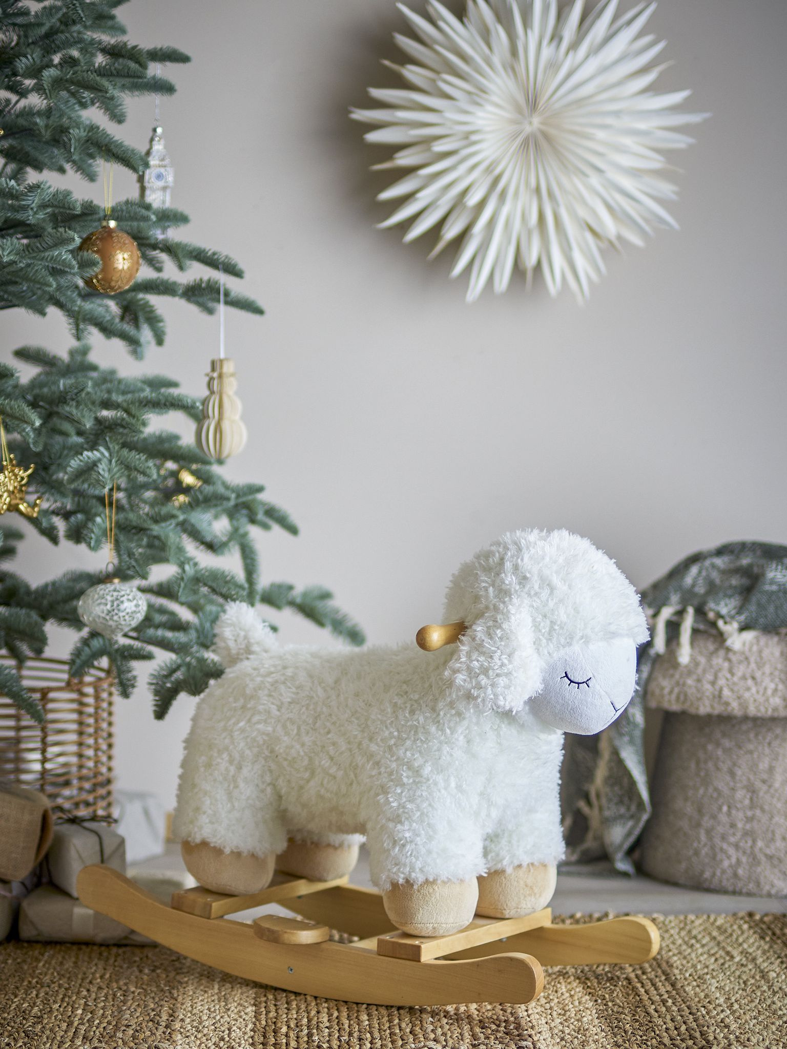 Laasrith Gungleksak, får Vit Polyester 949 cm Bloomingville Mini är en mjuk och charmig gungdjur som gör lekstunden rolig och trygg. Den fluffiga vita polyesterfinishen kombinerar med en stadig bas av poppelträ för hållbar lek och långvarig användning. Perfekt i barnrummet som lekkompis eller som mysig inredningsdetalj i vardagsrummet.
