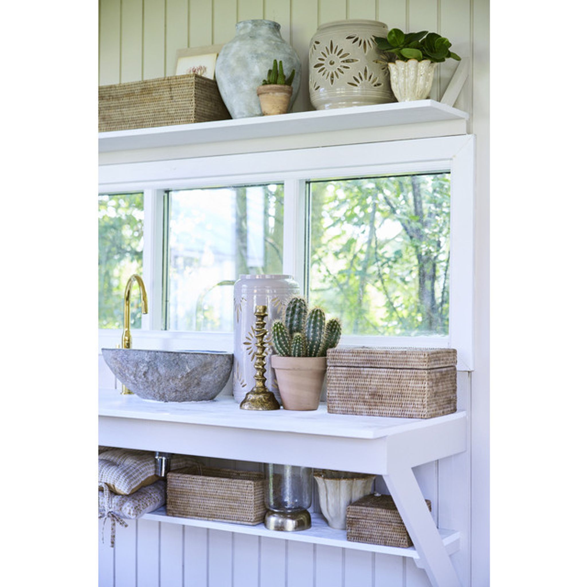 Rottinglådan från Norah-serien ger dig enkel och tydlig förvaring som gör vardagen smidigare: du minskar röran, hittar grejer snabbare och får en enhetlig känsla i rummet. Materialet är naturligt och vävd för att hålla länge. Storleken gör den flexibel att placera på hyllor, under bord eller i skåp.