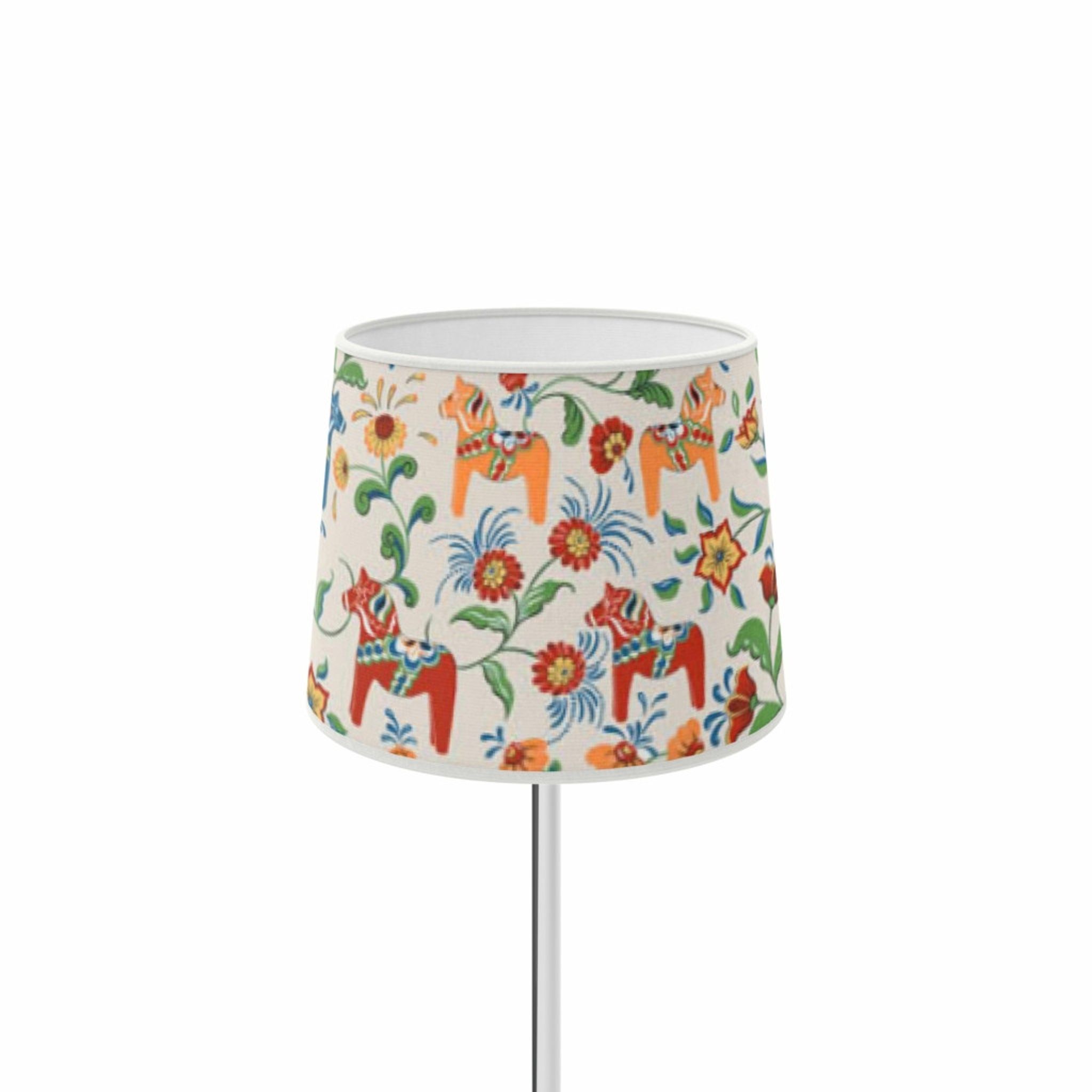 Upptäck den charmiga Leksand Mini beige lampskärmen från Arvidssons Textil, med en diameter på 20 cm. Denna lampskärm är prydd med det ikoniska mönstret "Leksand med Dalahästar", som fångar den folkloristiska andan från Dalarna.