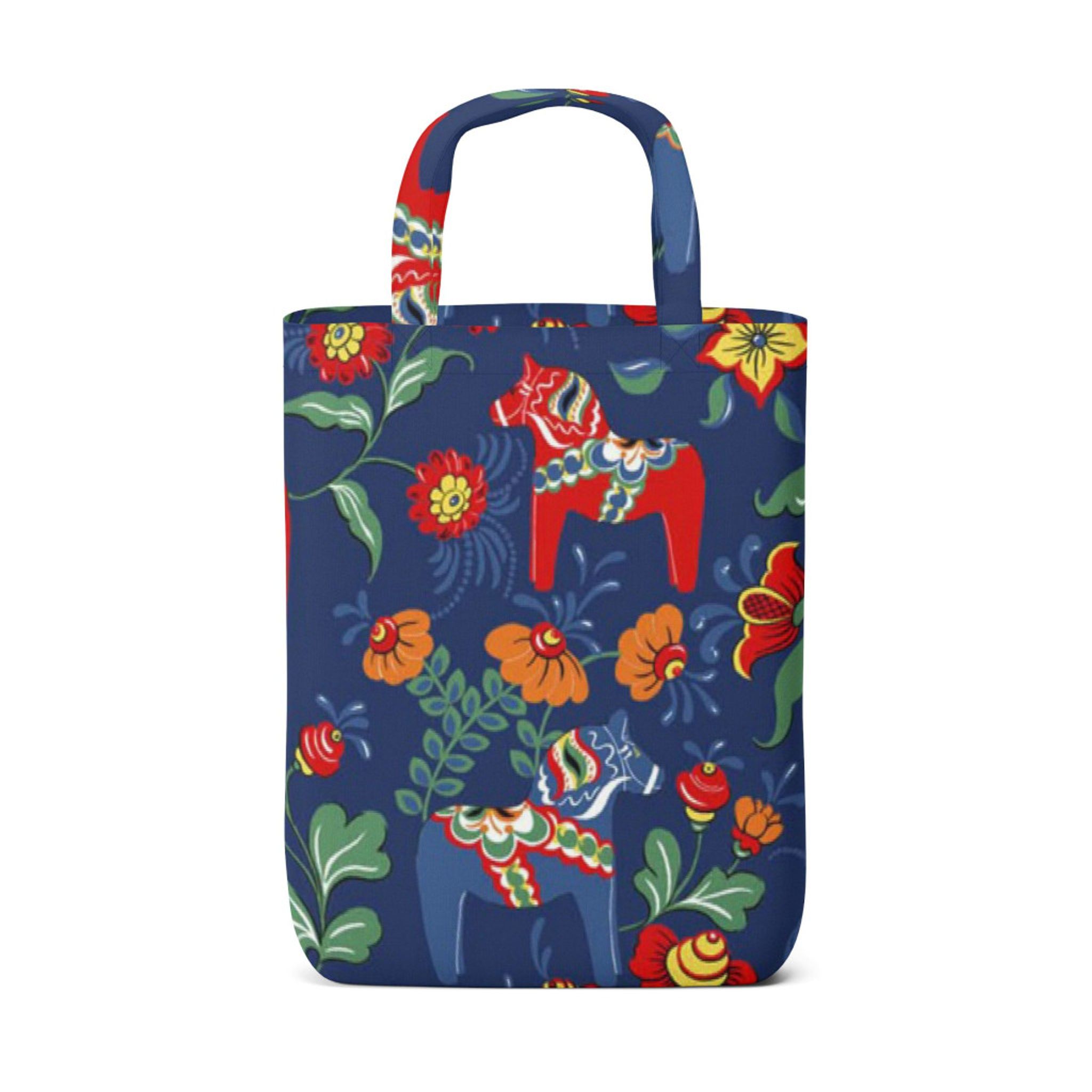 Perfekt som shoppingkasse, vardagsväska eller presentförvaring. Ta med dig svenska traditioner till vardagen och låt kassen bli en färgstark detalj i hemmet.