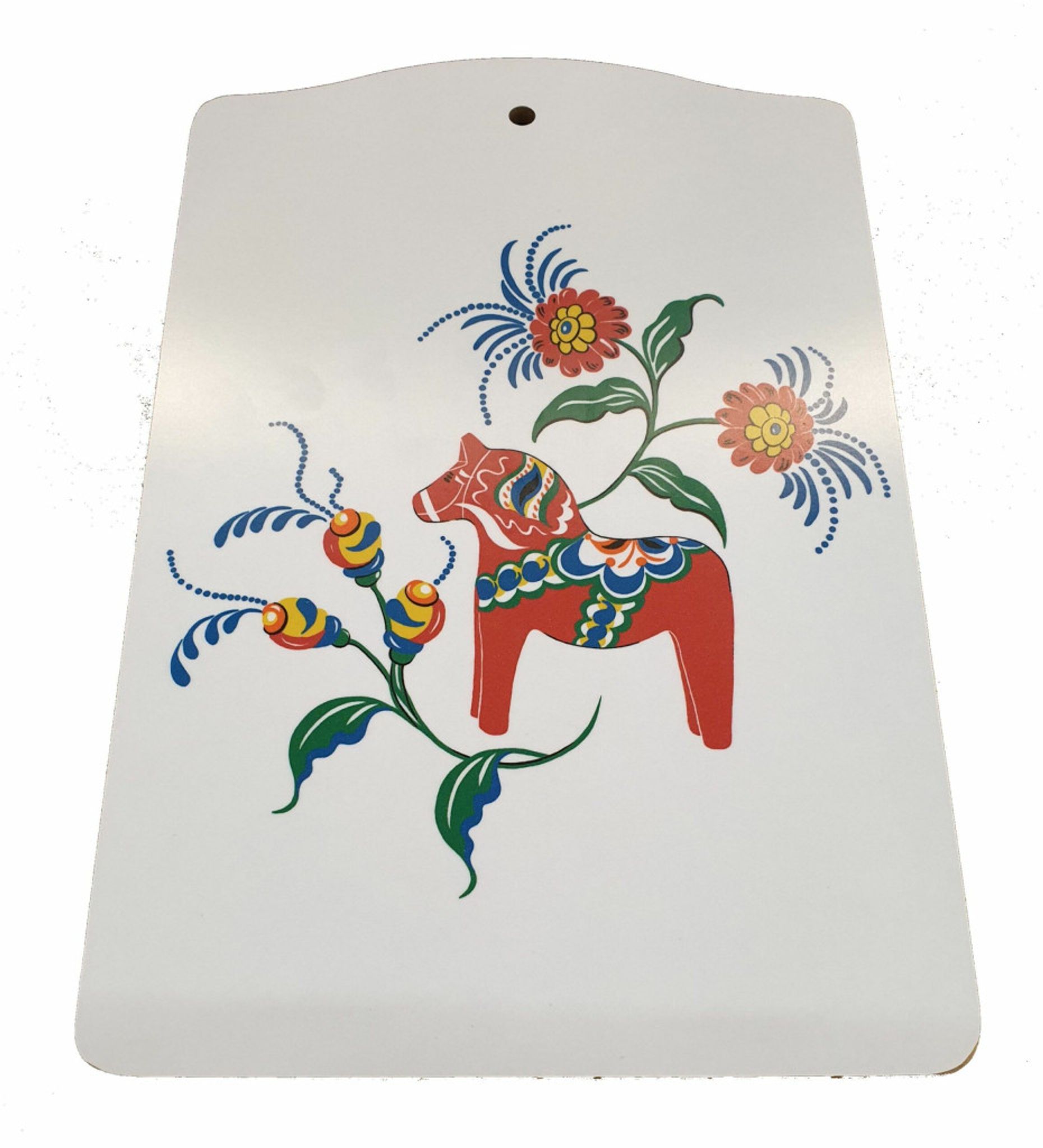 Leksand offwhite serveringsbräda från Arvidssons Textil förenar praktisk användning med svensk kultur. Den avspeglar det färgstarka Leksand-mönstret med Dalahästar, inspirerat av Dalarnas traditioner. Den ljusa offwhite basen gör brädan enkel att matcha till olika bordslösningar och dukningar.