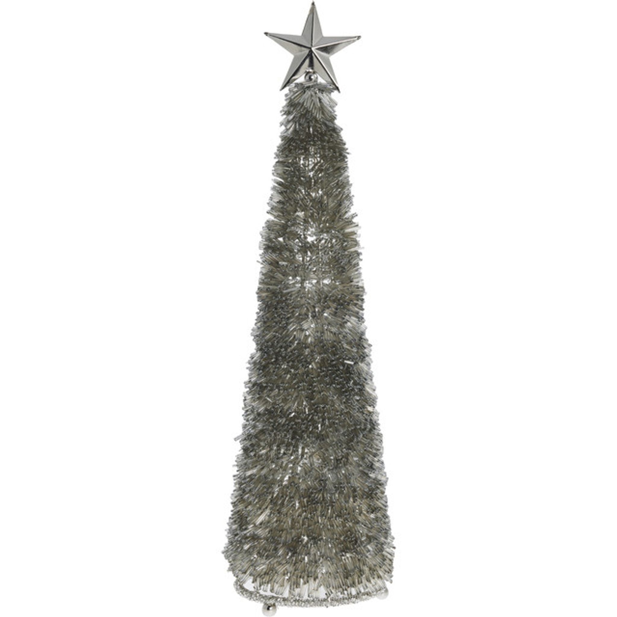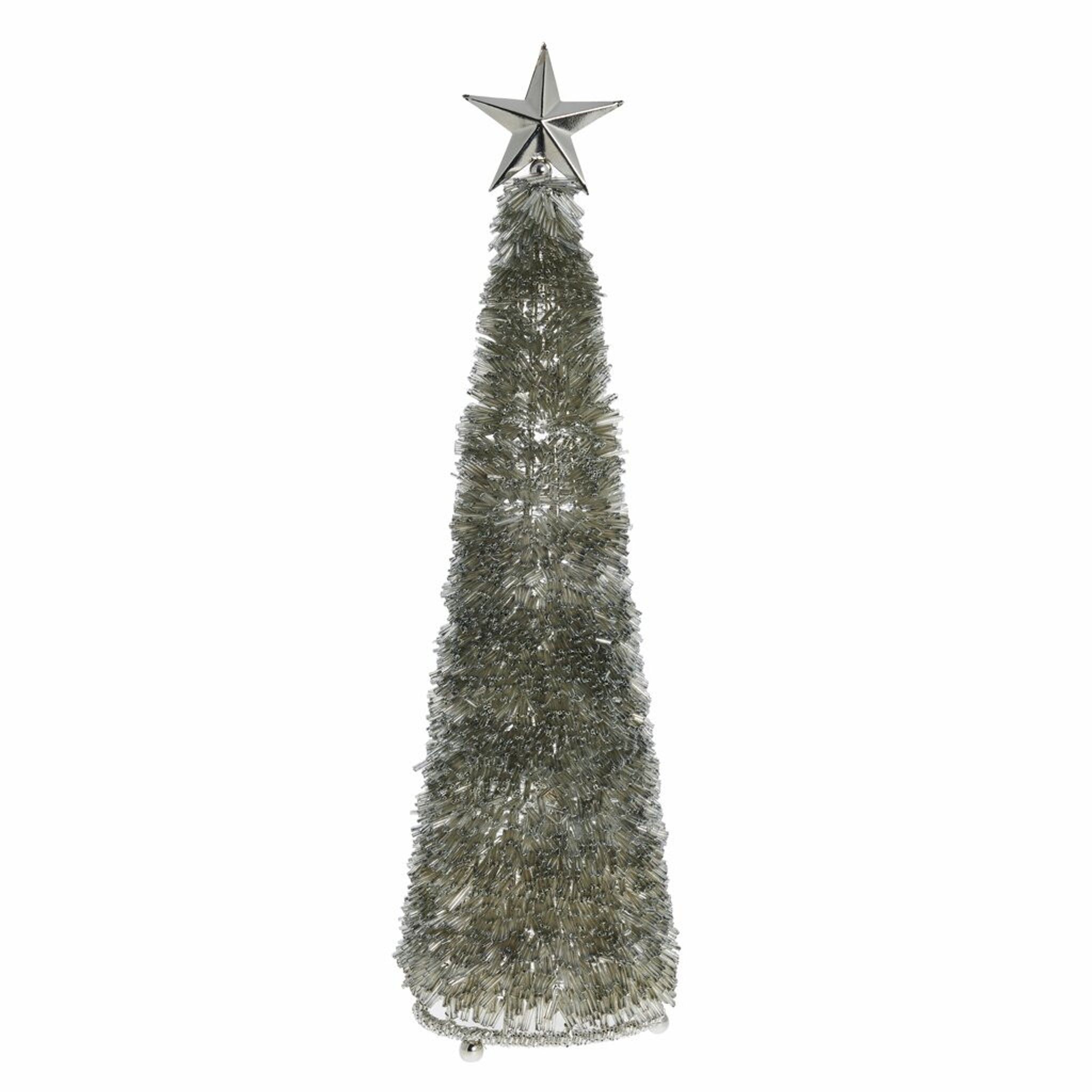 Ge ditt juldekoration ett lyft med Almine dekorationsträd i elegant silvernyans, prytt med glittrande pärlor som reflekterar ljuset vackert.