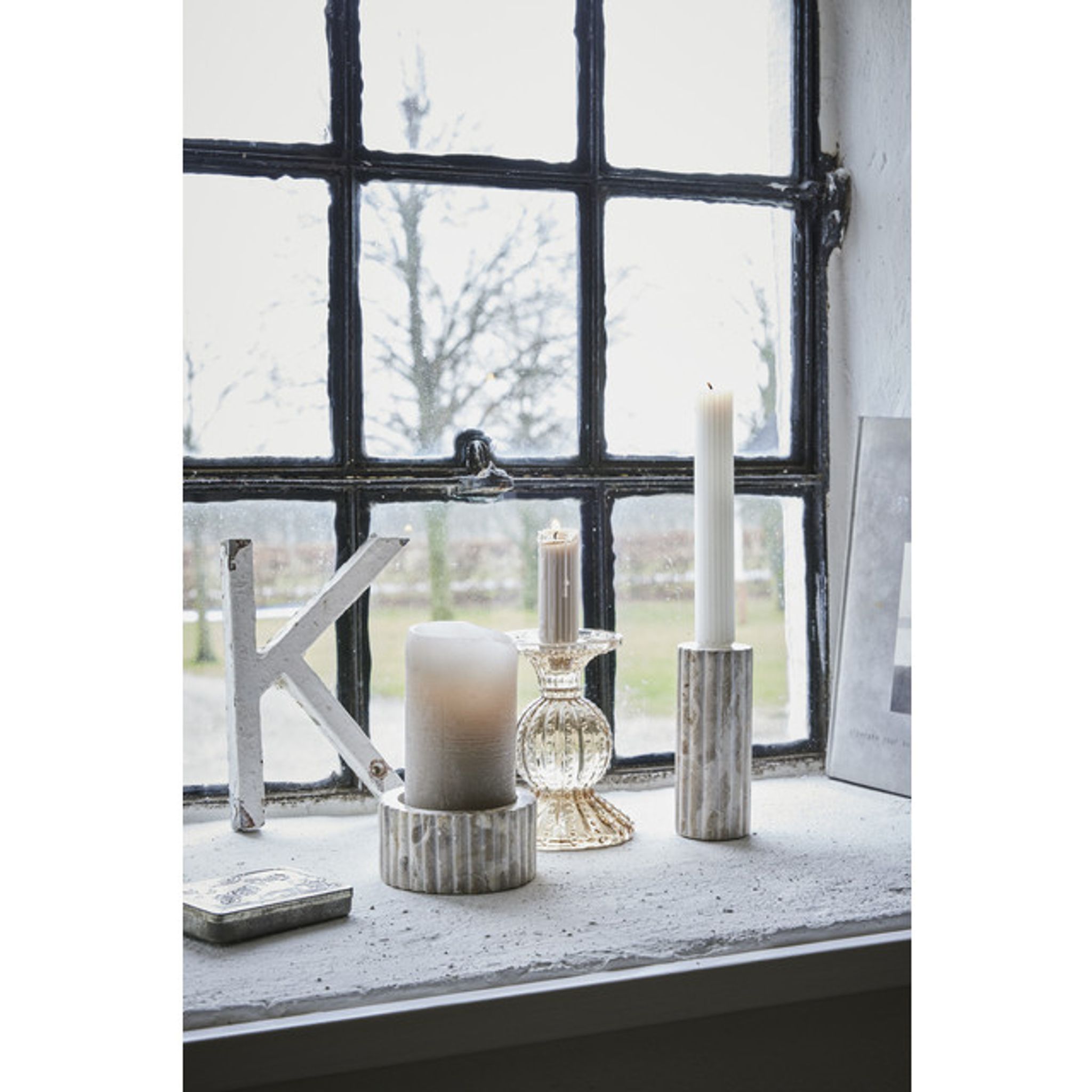Lene Bjerre Eliana Ljusstake 12.5x4.5 cm Marmor Linne