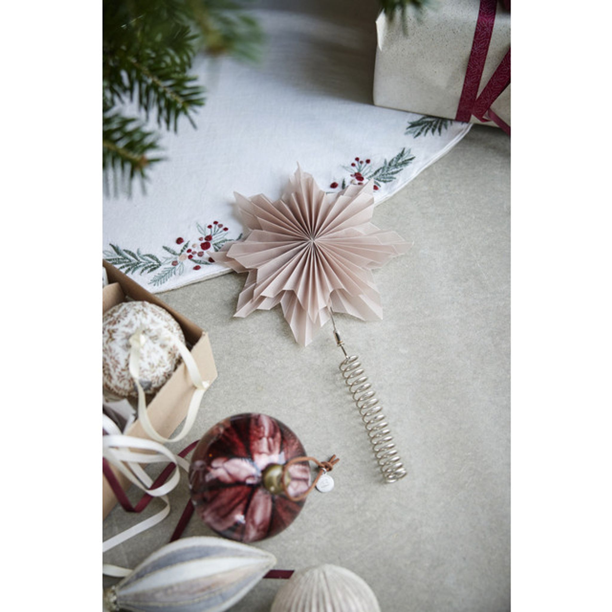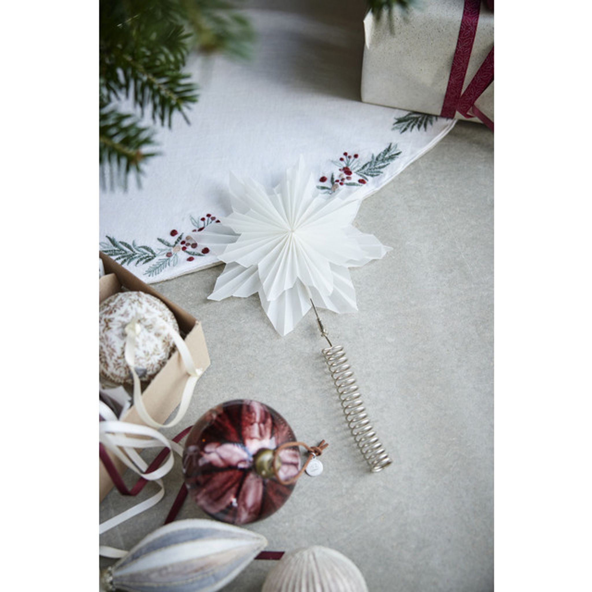 Komplettera din juldekoration med vackra hängande prydnader från Lene Bjerre och låt denna Penine julgransmatta bli en del av din jultradition.