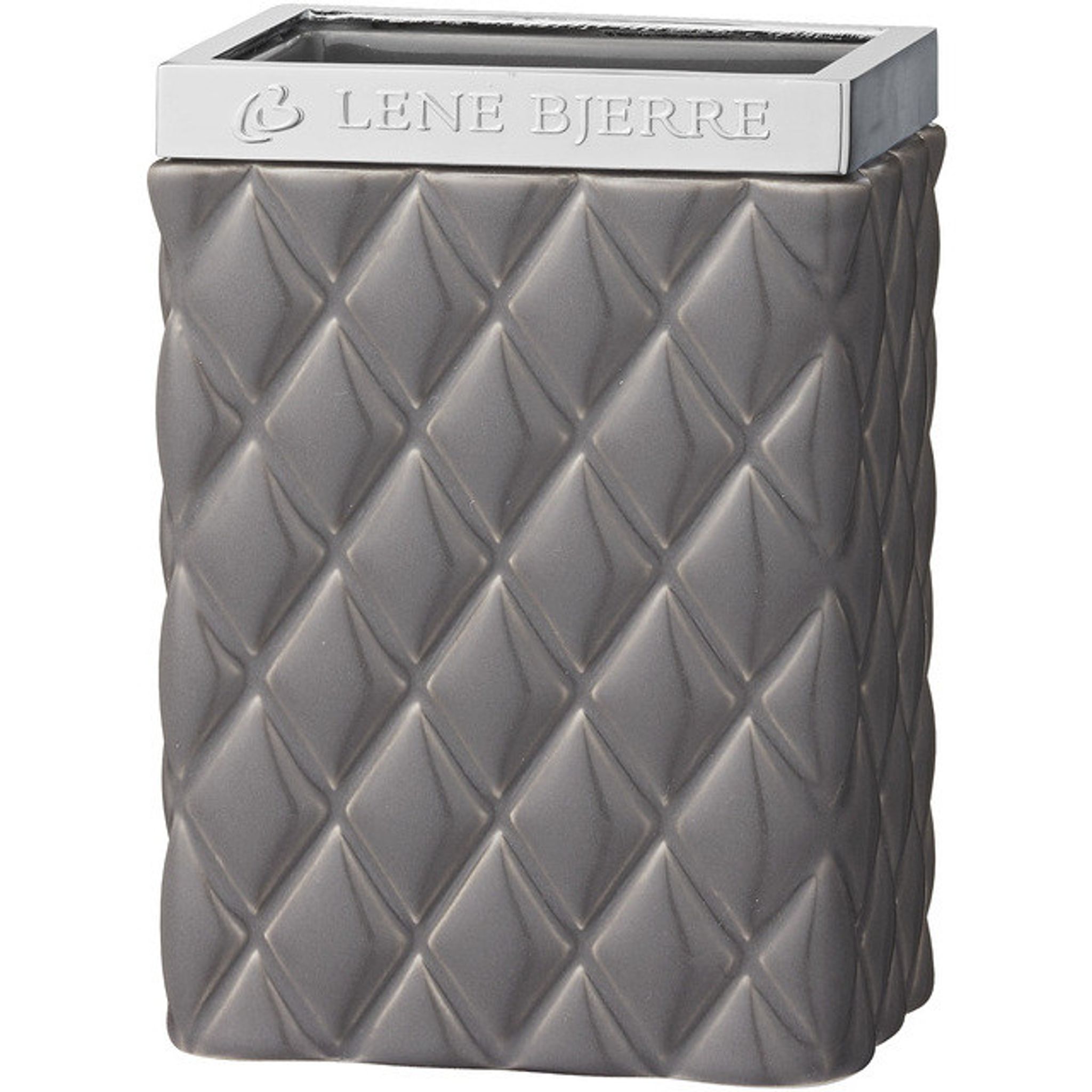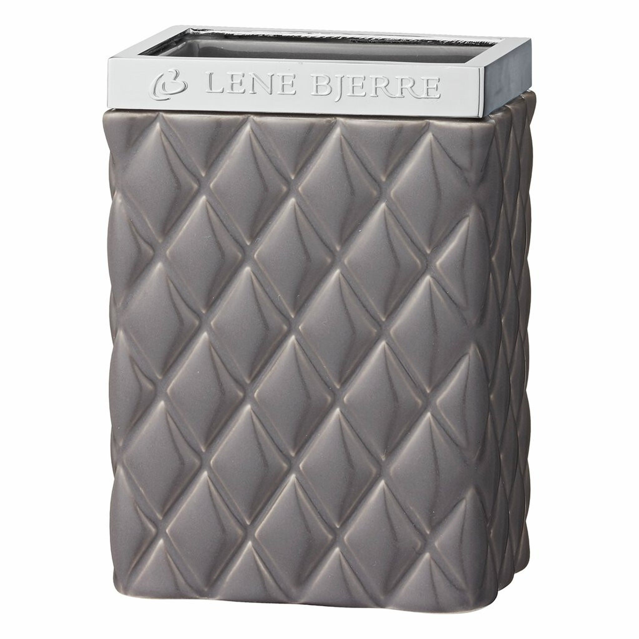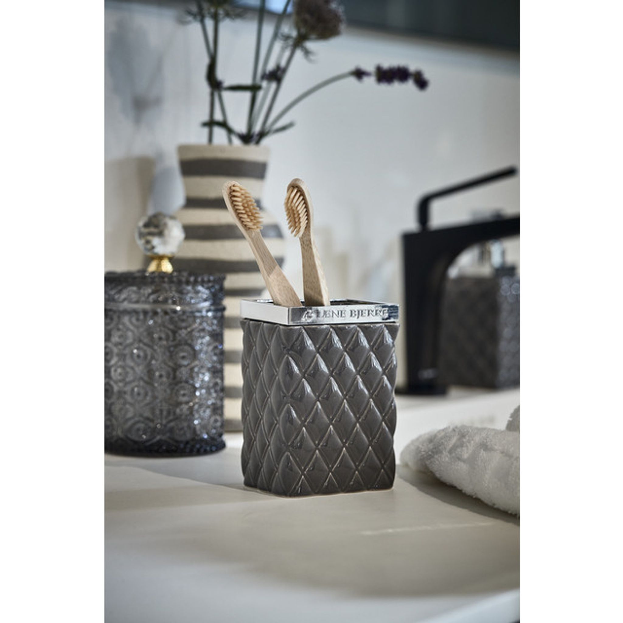 Upptäck Lene Bjerre Portia tandborstmugg i mörkgrå och silver. Stilren och funktionell, tillverkad av keramik, perfekt för alla badrum.