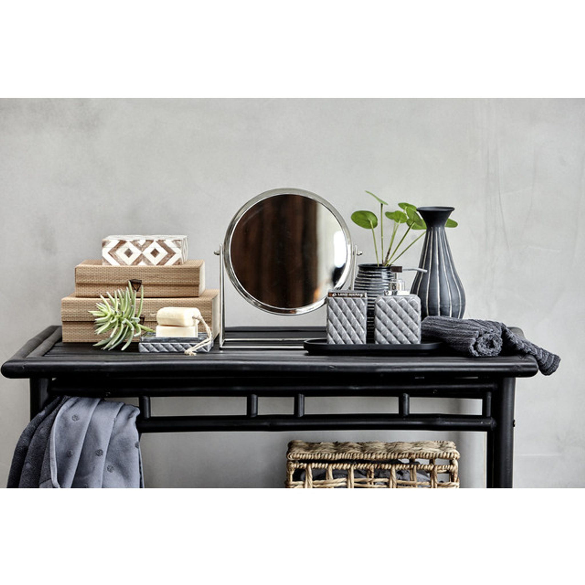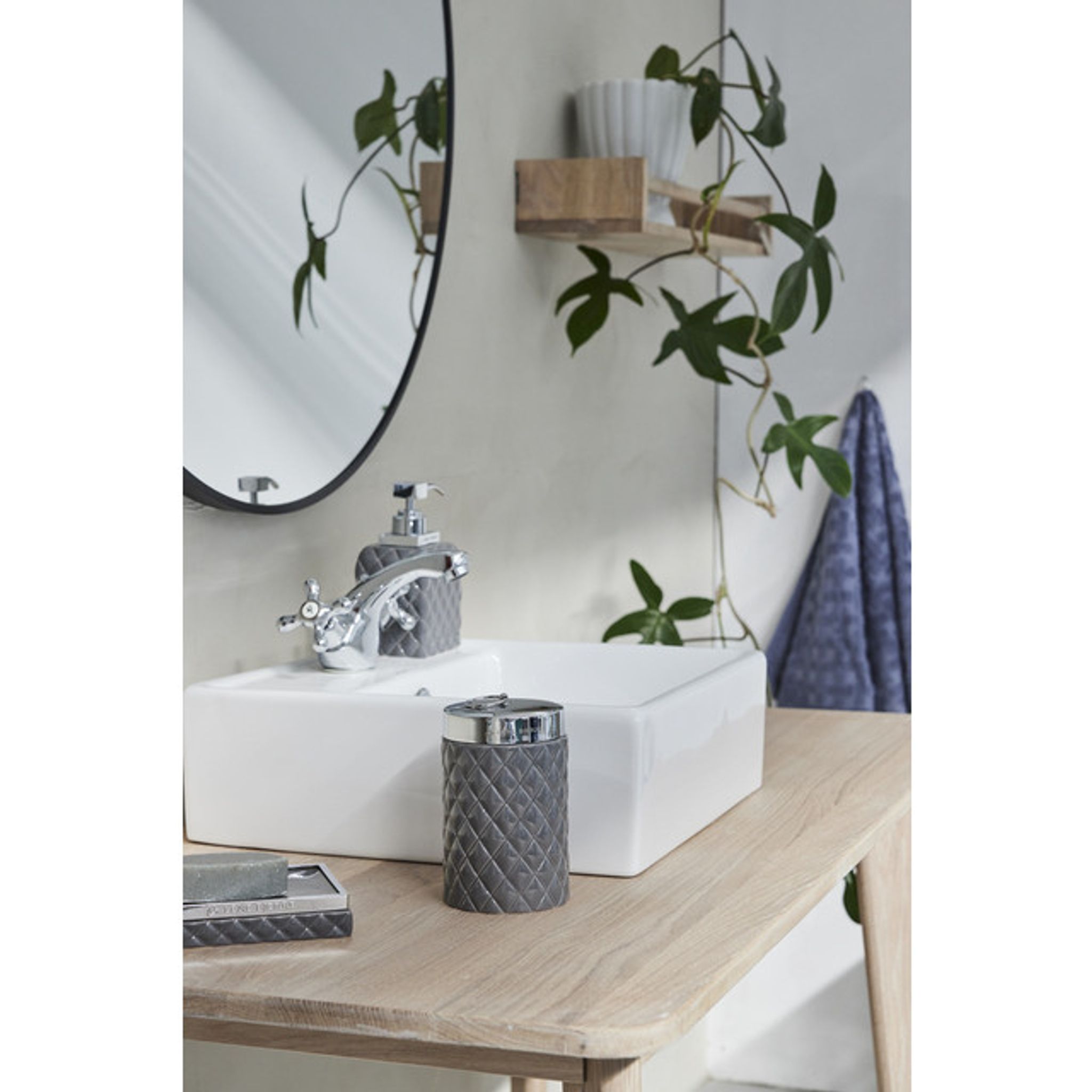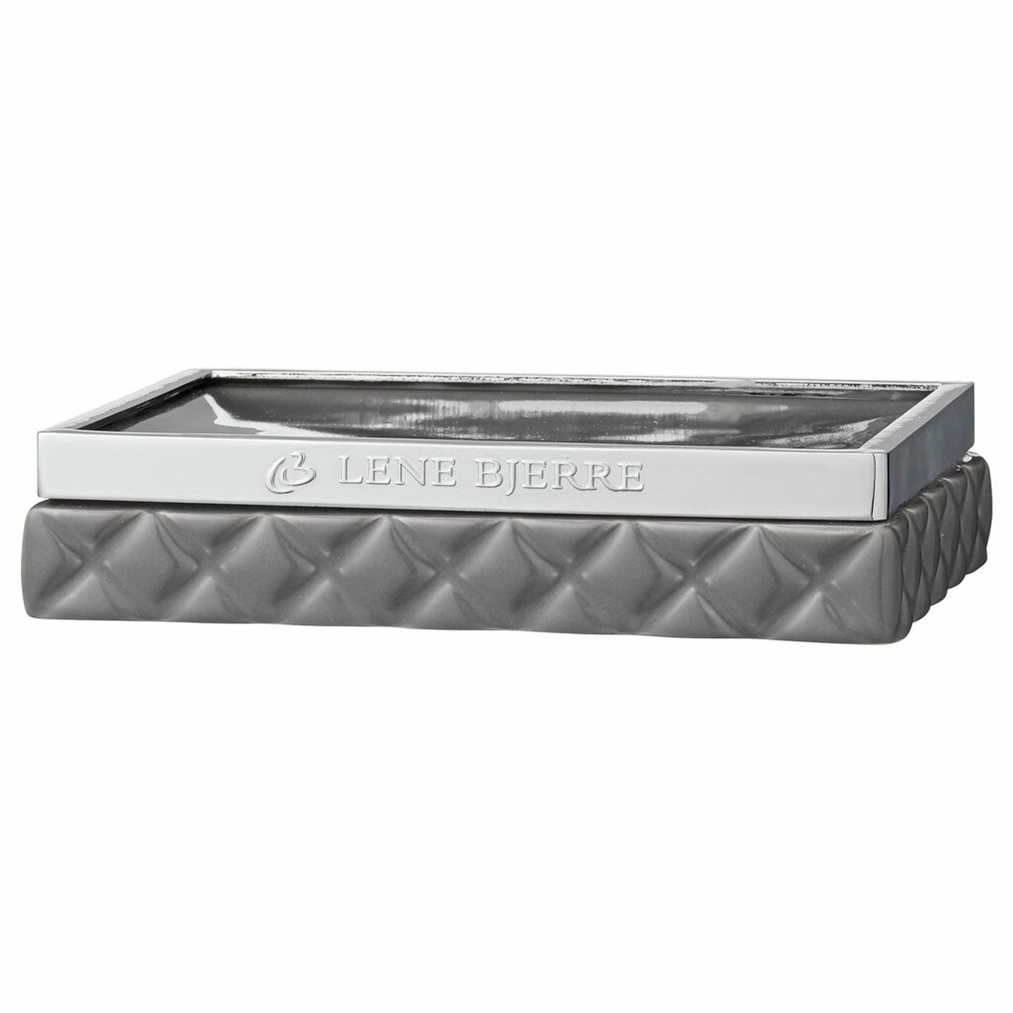 Upptäck Lene Bjerre Portia Tvålfat i en elegant mörkgrå och silverfärg, perfekt för att ge ditt badrum en stilren touch.