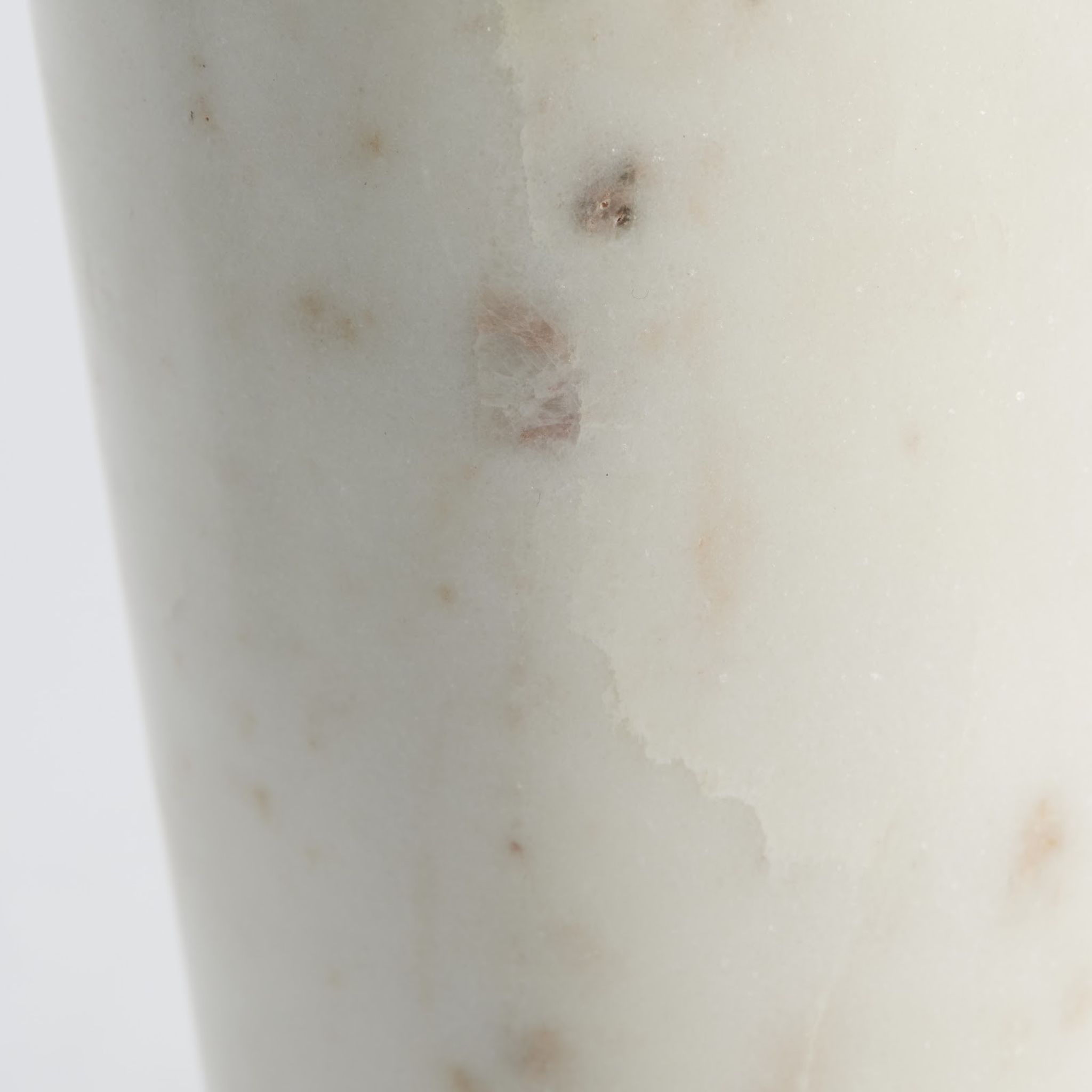 Ljusstaken är handgjord av massiv marmor och står 23 cm hög med en bas på 9x9 cm. Vikten på cirka 3 kg ger stabilitet så att den står stadigt under bruk. Materialet gör att du får en marmorljusstake där varje exemplar skiljer sig i färg och mönster.