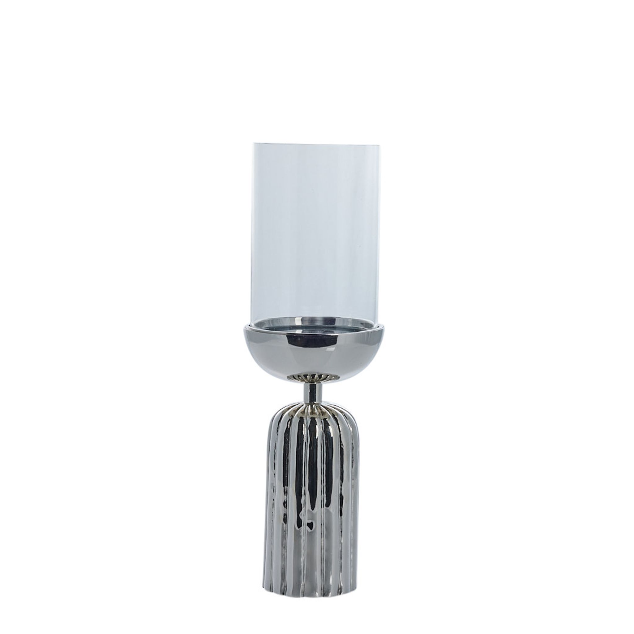 Den här ljusstaken kombinerar modern form med en design som håller länge. Aluminiumkonstruktionen ger stabilitet och glasdetaljerna lyfter helhetsintrycket. På 36,5 cm blir den ett tydligt blickfång på bordet eller vid spiselkransen utan att ta över din inredning.