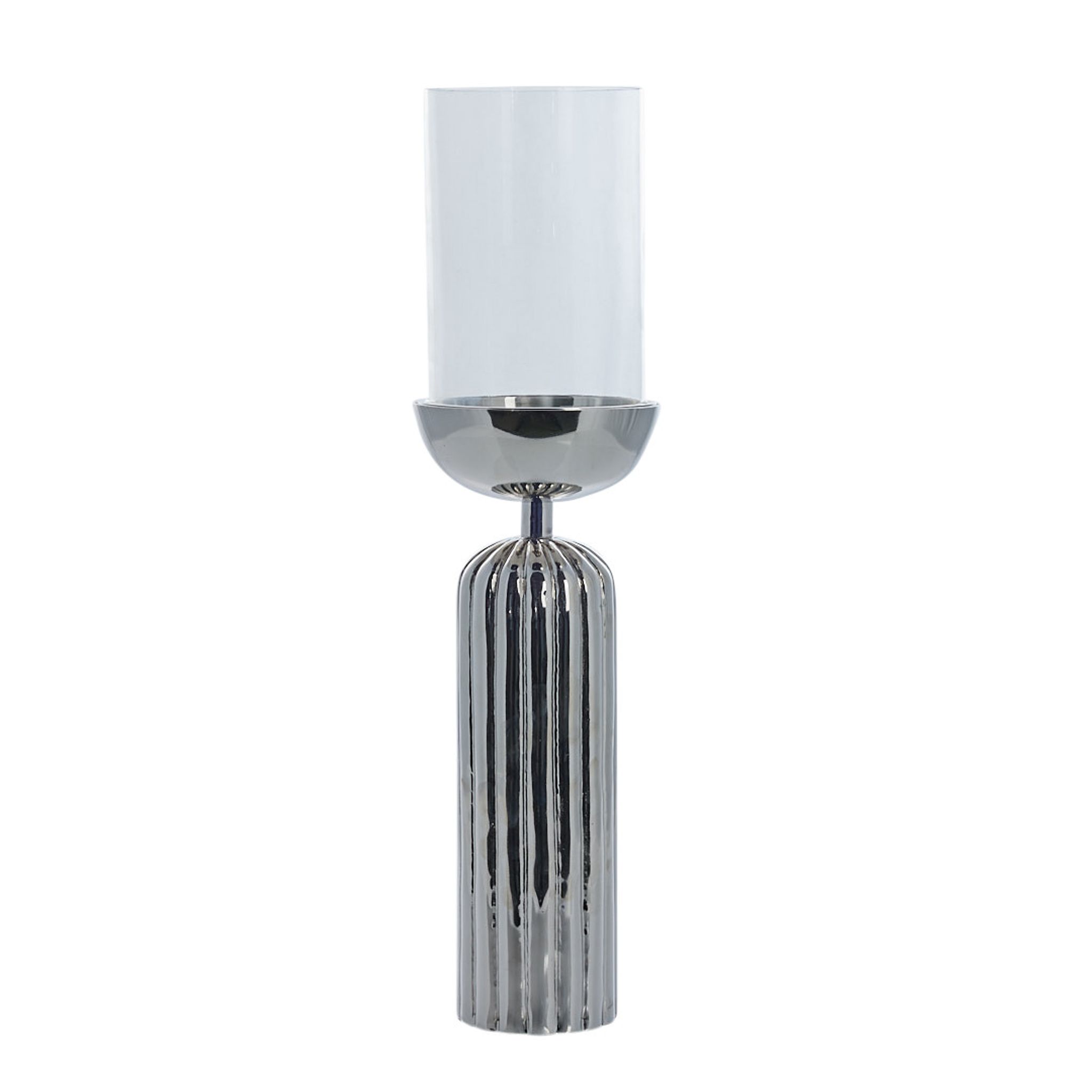 Materialen aluminium och glas gör ljusstaken lätt att flytta och enkel att hålla snygg. Med sin höjd på 43,5 cm blir den ett välgjort blickfång utan att behöva platskrävande montering.