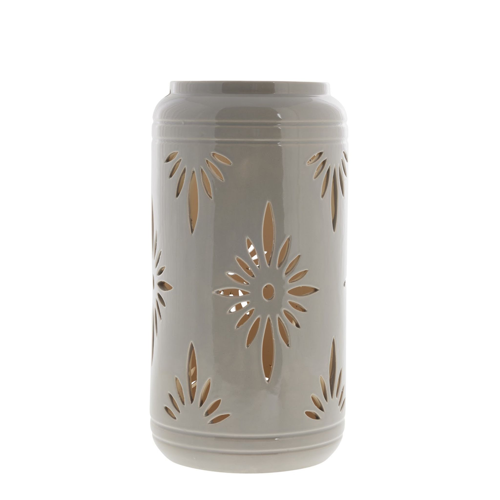 Hilde lykta i keramik, linne, 39 cm hög från Lene Bjerre. Den passar både inne och ute, funkar som ljuslykta och är snygg, praktisk och håller länge, ett bra val för ditt hem.