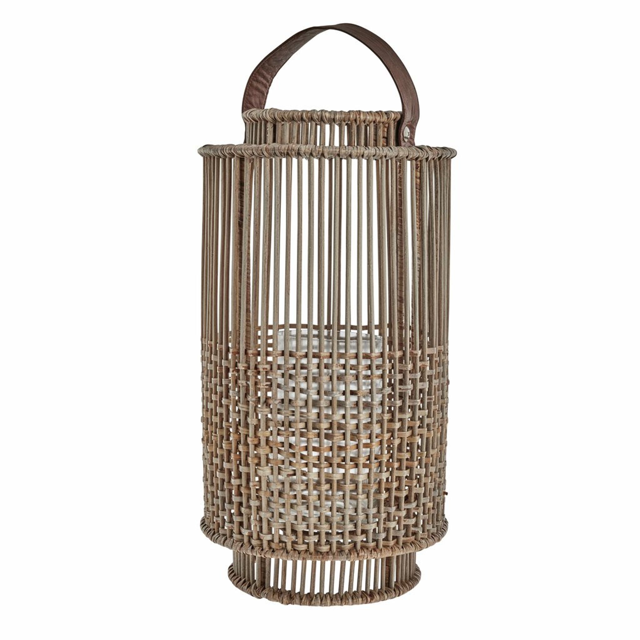 Noralle lykta i rotting, H51 cm, från Lene Bjerre. Snygg, praktisk ljuslykta som håller länge och passar i ditt vardagsrum eller på uteplatsen, funkar bra med värmeljus.