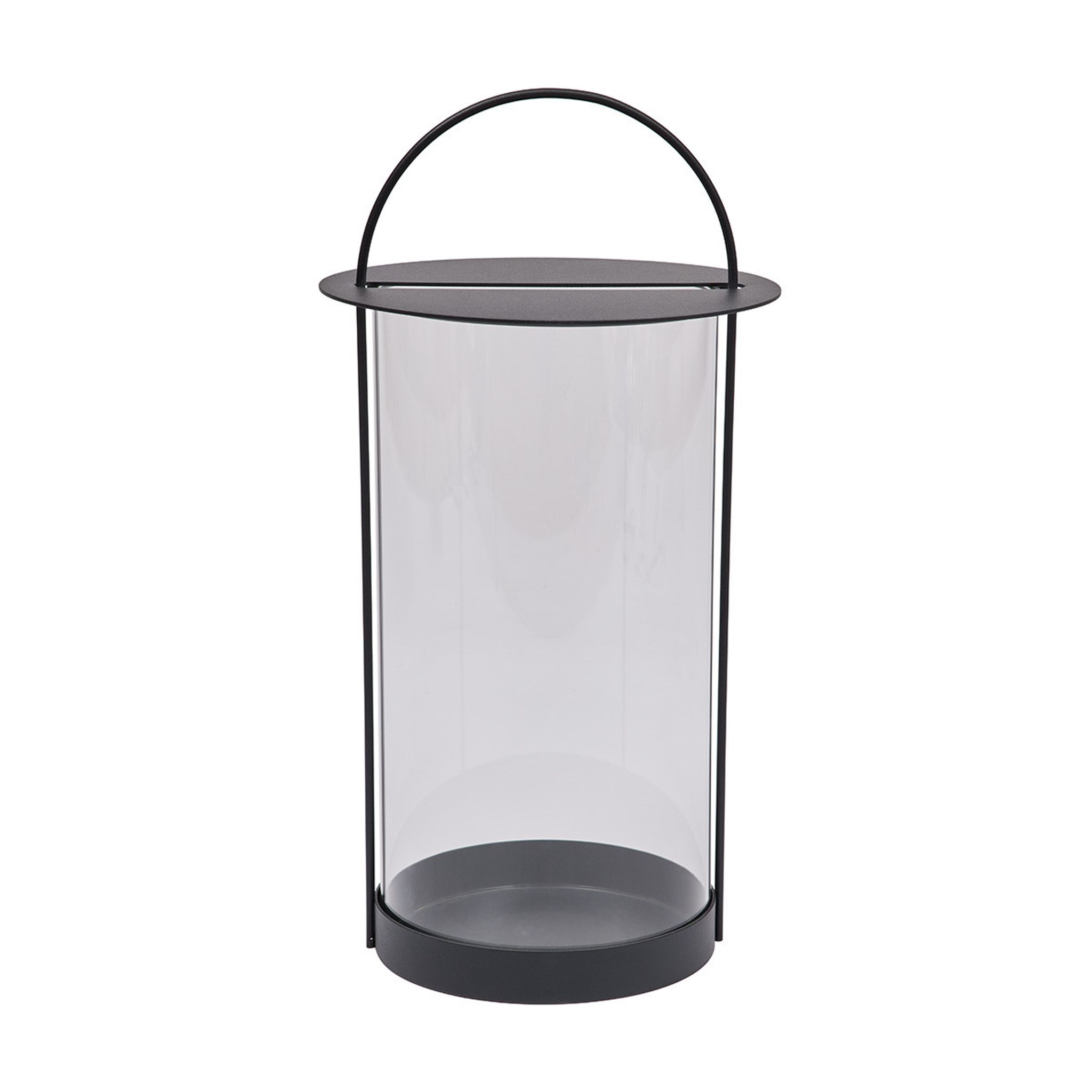 Lyktan är gjord i metall med en stabil, cirkulär bas som ger god stabilitet och passar olika ljusstorlekar. Med sin Ø25 cm blir den lätt att placera på bord eller stadiga ytor och fungerar bra under sensommarkvällar och andra utomhustillfällen.