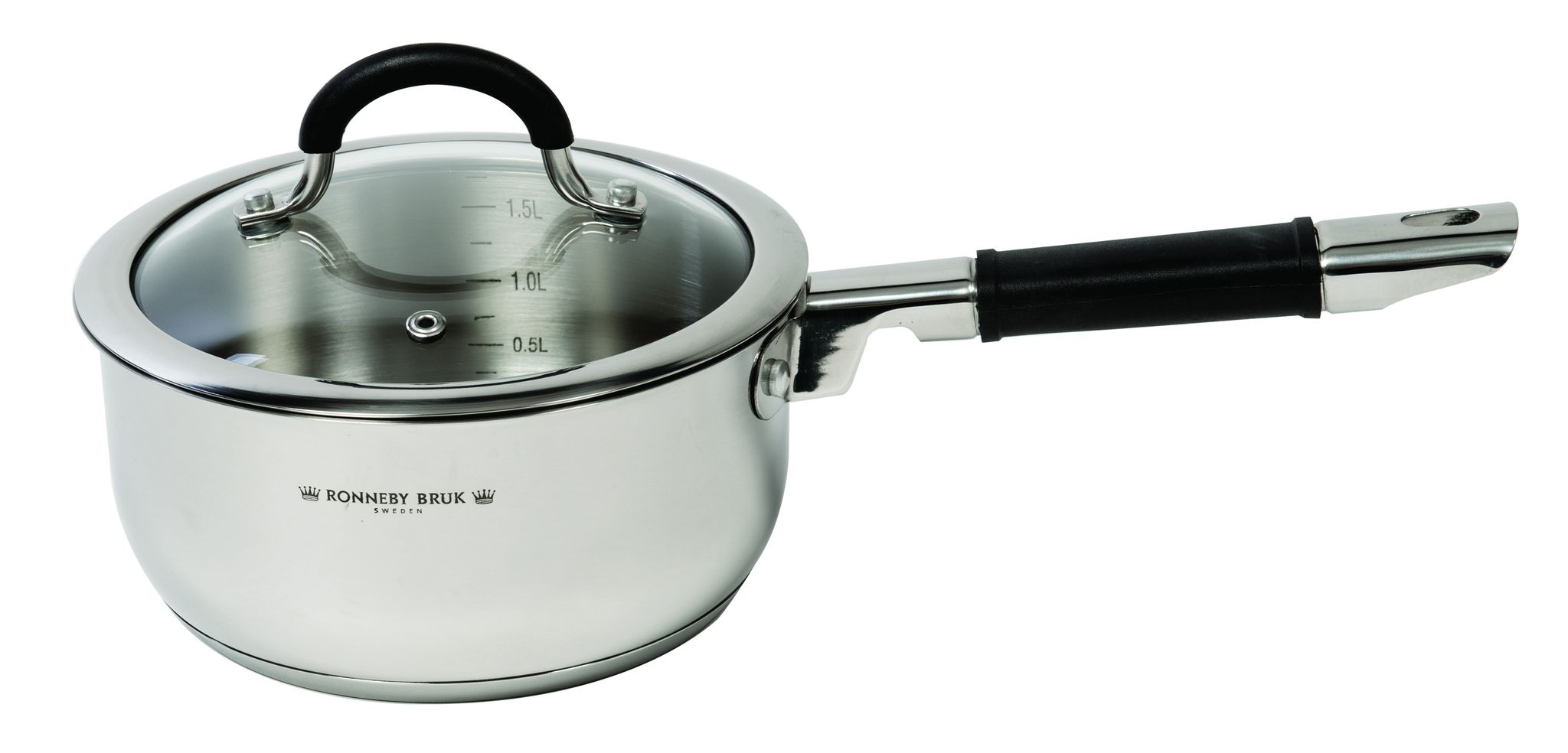 Upptäck Maestro Kastrull 2L från Ronneby Bruk, en rostfri kastrull med ventilerat glaslock för enkel övervakning av matlagningen.