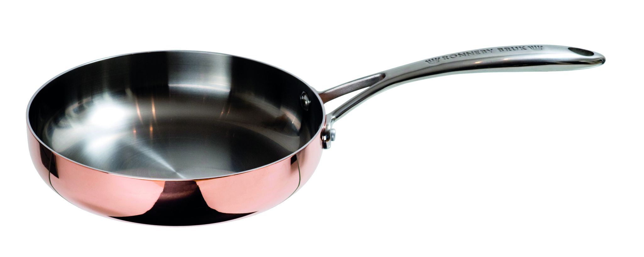 Upptäck Maestro Stekpanna från Ronneby Bruk, en elegant kopparstekpanna med induktionsbotten, perfekt för både vardagsmatlagning och festliga tillfällen.