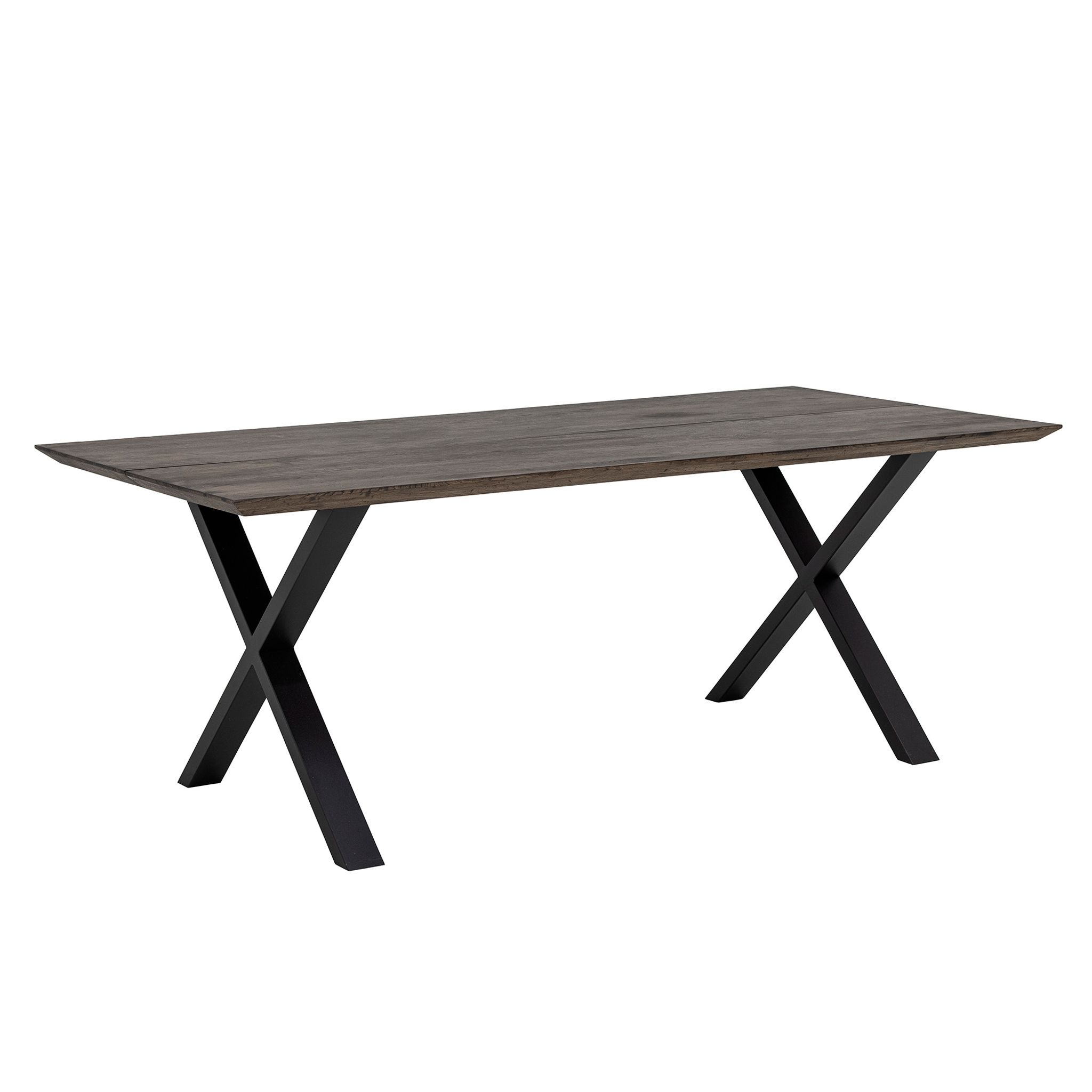 Material: ek (kombinerad med metall). Mått: bordsskiva 200x95 cm, höjd 74 cm. Vikt cirka 48 kg och maxvikt 60 kg. Färgen är brun; variationer i nyans kan förekomma beroende på materialets naturliga egenskaper.