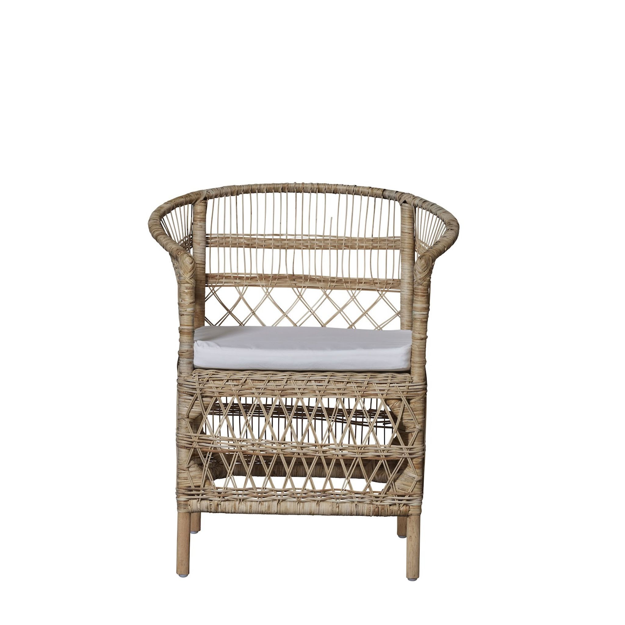 Material: rotting. Mått: B 69 x D 46 x H 83 cm. Vikt: 5 kg. Färgen är natur. Kuddar medföljer för bekvämare sittning. Underhållet är enkelt — torka av med en fuktig trasa och polera med en mjuk torr trasa.