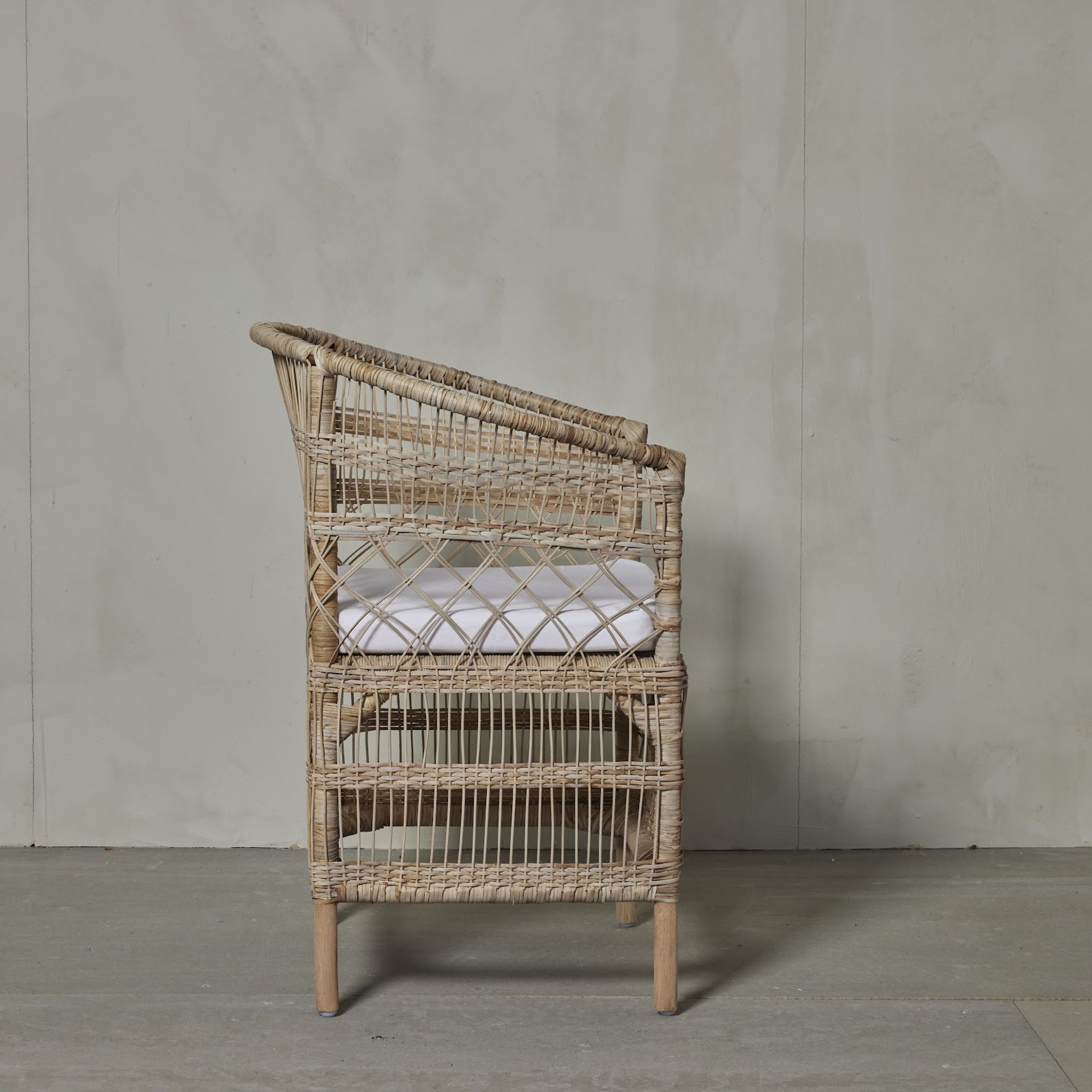 Det här är en matstol i handflätad rotting som kombinerar komfort och hållbarhet. Stolen är särskilt avsedd för matplatsen men fungerar också som en extra stol när du får gäster.