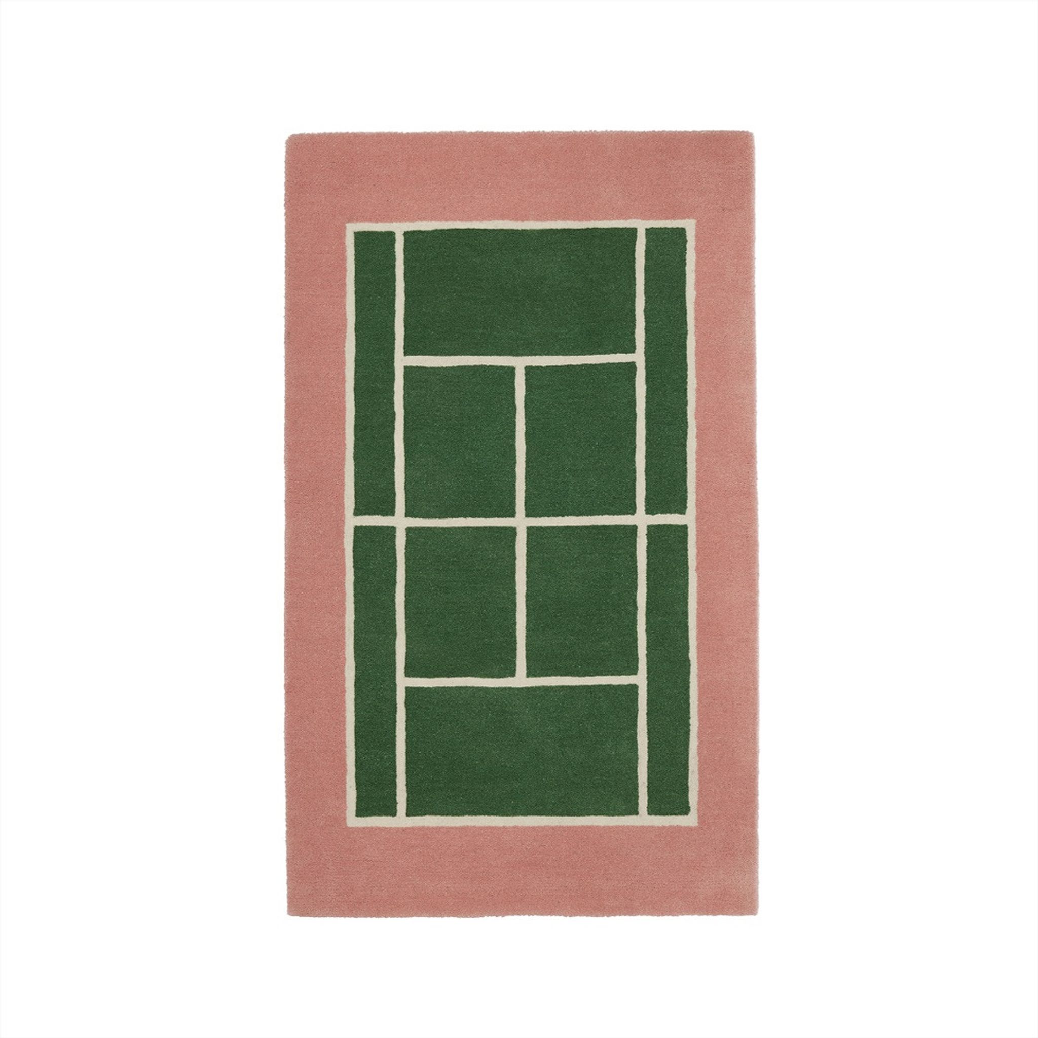 Tennismatta Grön/Rosa 88x150 cm i ull från Oyoy Mini. Passar i ditt barnrum eller lekhörna, funkar som lek- och mysmatta, är snygg, praktisk, håller länge och bra.