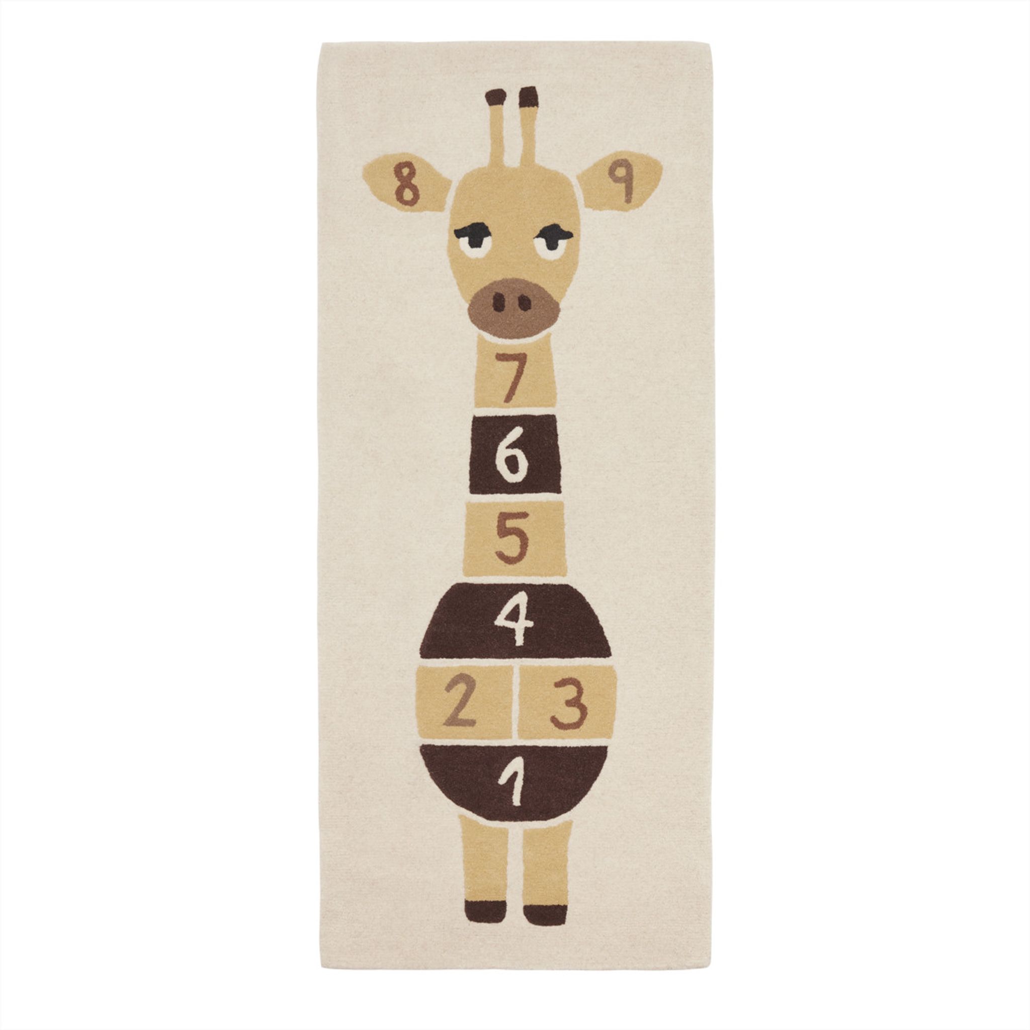 Giraf Hopscotch Matta i gul ull, 75×180×2 cm, från Oyoy Mini. Den är snygg och praktisk, håller länge, passar i ditt barnrum och funkar bra som barnmatta.