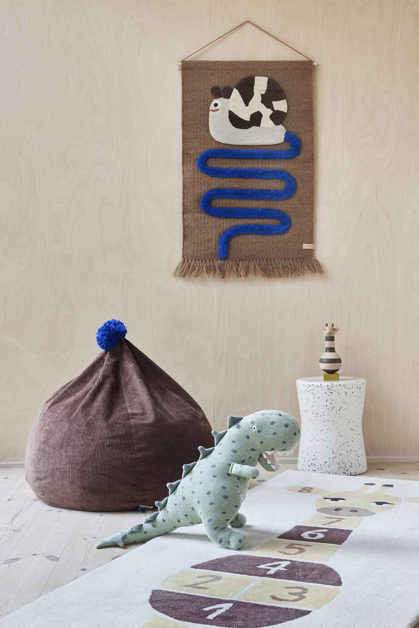 Ingen specifik åldersgräns anges. Använd inomhus. Rengör med dammsugning och punktbehandling vid fläckar. Se till att barn är under uppsikt vid lek. Låt denna Giraf Hopscotch Matta Gul Ull Oyoy Mini förbättra ditt hem