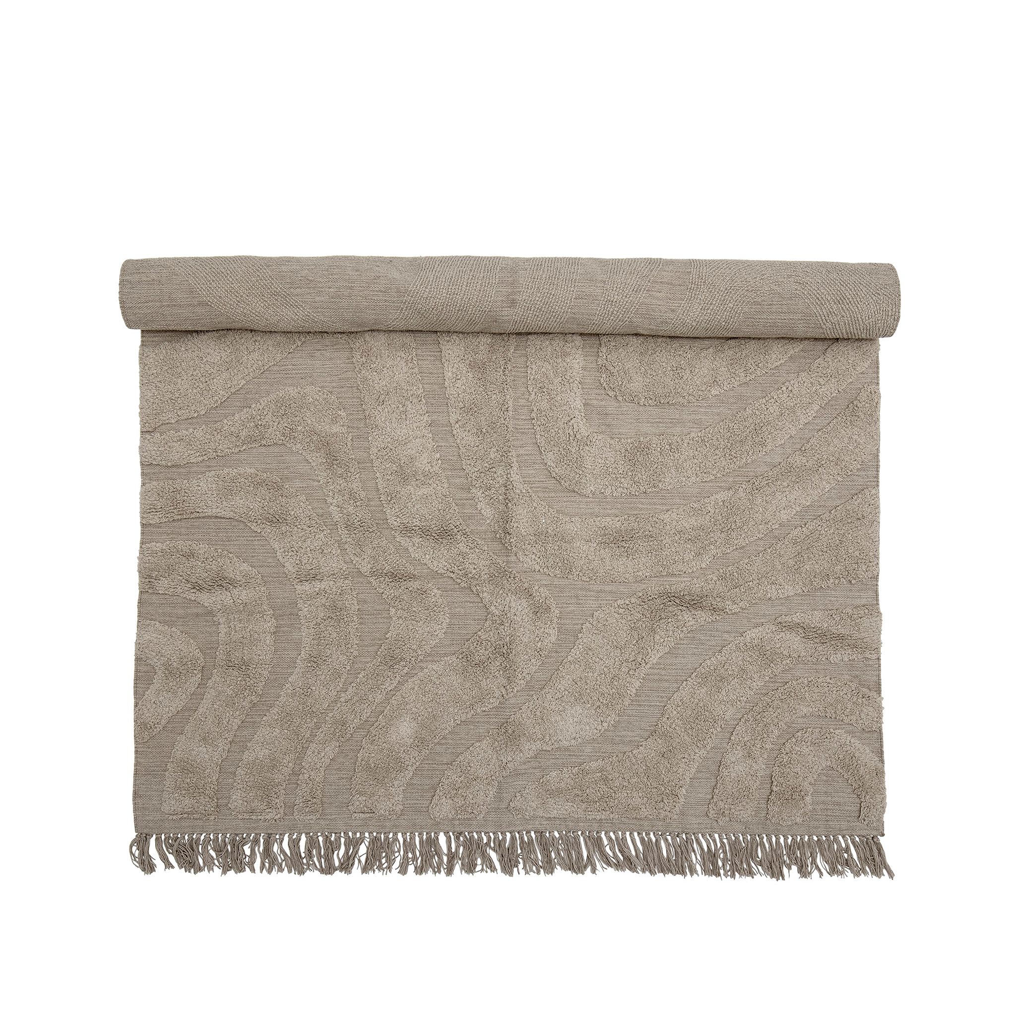 Matta i 100% bomull med garnfärgad yta och tuftade detaljer. Mått 150 x 210 cm gör den lämplig som vardagsrumsmatta eller sovrumsmatta där du vill markera en yta och få mer komfort i vardagen. Handvävd konstruktion och vävd finish ger hållbar känsla samtidigt som materialet är mjukt för barn och husdjur. Enkel att hålla ren med punktfläckrengöring.