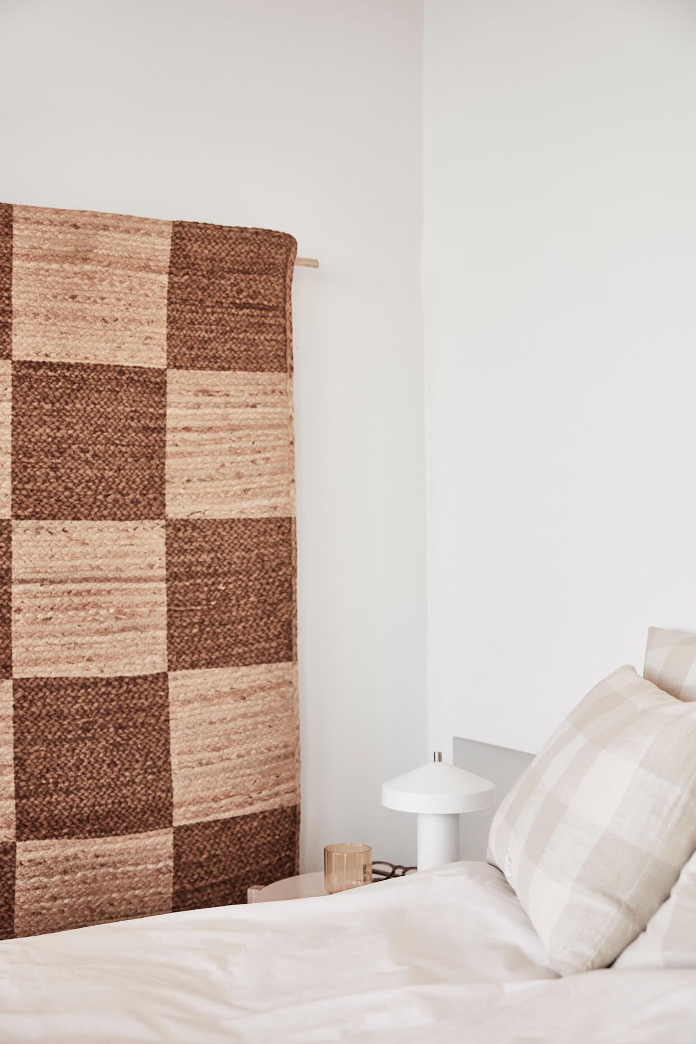 Schackvägg & Golvmatta Natur Jute från Oyoy Living är en handgjord jute-matta som passar både som väggmatta och golvmatta i ditt hem. Du kan hänga den på väggen eller lägga den på golvet för att skapa en naturlig, ombonad känsla i vardagsrum, hall eller sovrum.