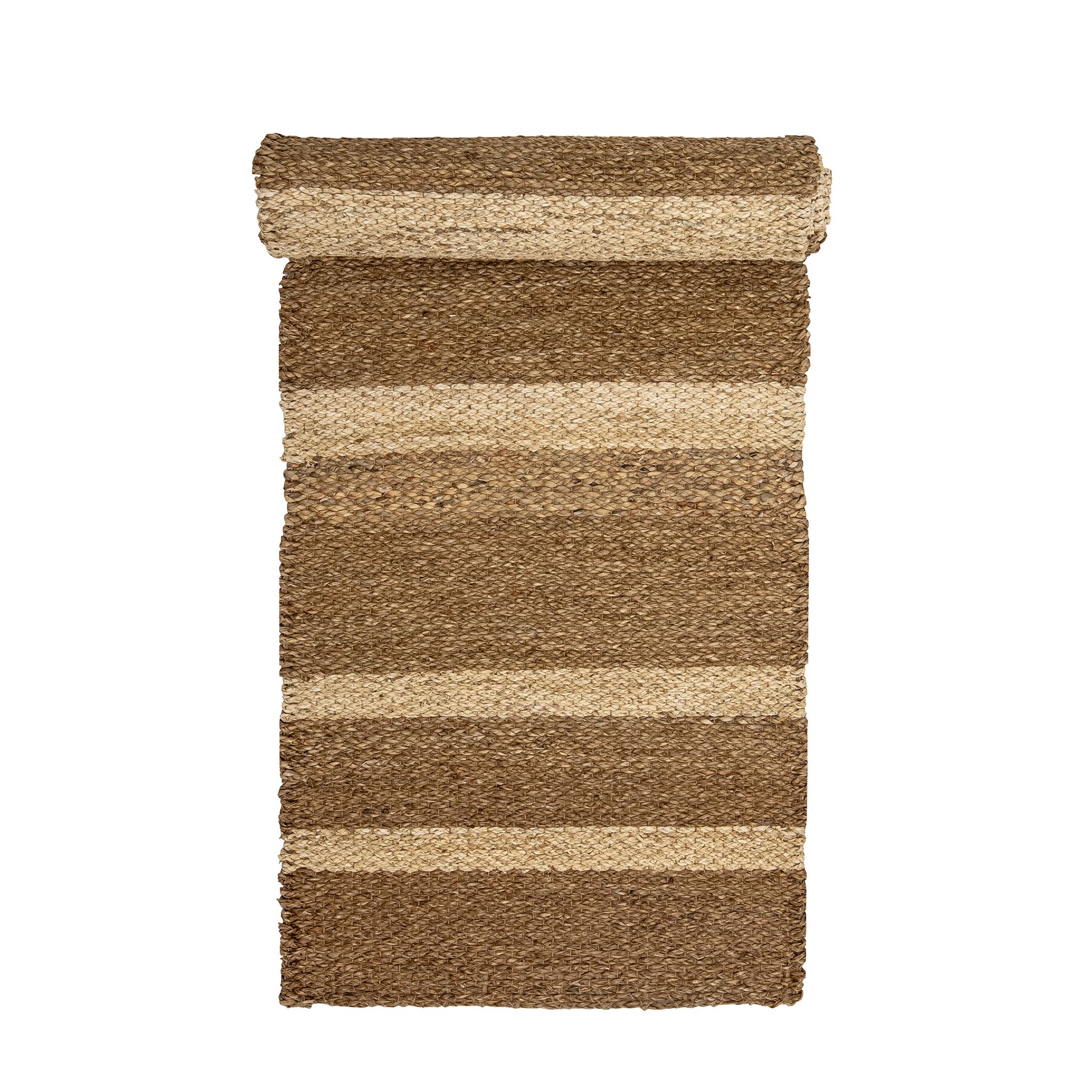 Det här är en handvävd matta i naturfärg från Bloomingville, gjord av vattenhyacint, sjögräs och majsblad. Den passar bra i vardagsrum, matplats eller entré/hall och ger en varm, naturlig stämning som fungerar i många typer av heminredning.