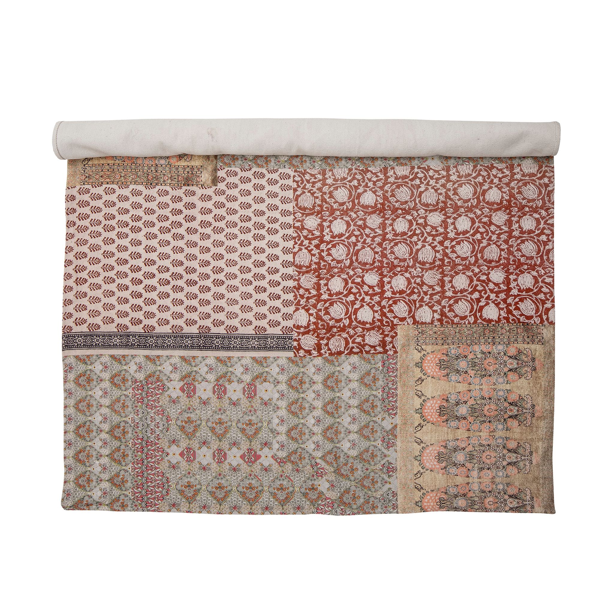 Mattans bomullsmaterial ger en mjukare yta att gå på och fungerar som en varm, skyddande zon för golvet i vardagsrum eller hall. Den röda färgen blir ett fokus i rummet utan att ta över, och den tryckta vävda finishen gör att mattan smälter in i olika heminredningar.