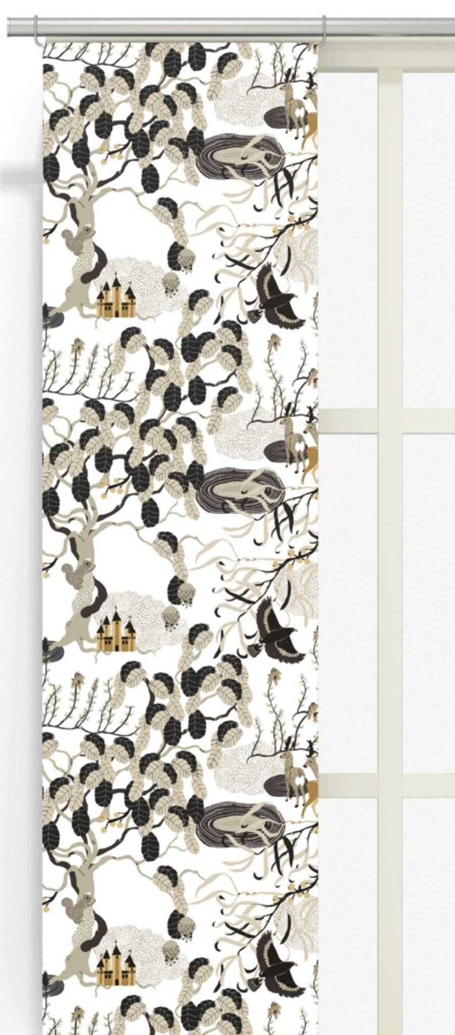 - Användning: Panelgardin som tillför naturlig avskärmning och ett dämpar ljus i kök, vardagsrum eller sovrum.