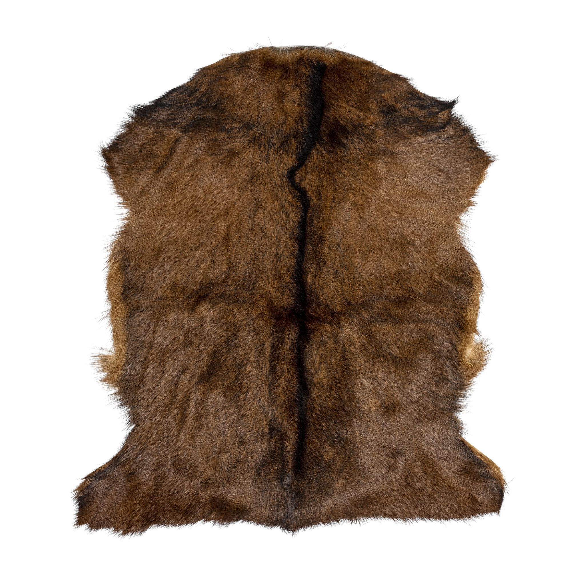 En brun getskinnsfäll som ger mjuk textur och en varm, välkomnande stämning i ditt hem. Den passar lika bra över soffan eller fåtöljen som som prydnad på en sängbänk — en enkel hemaccessoar som lyfter din inredning och gör sittplatsen skönare att sitta på.