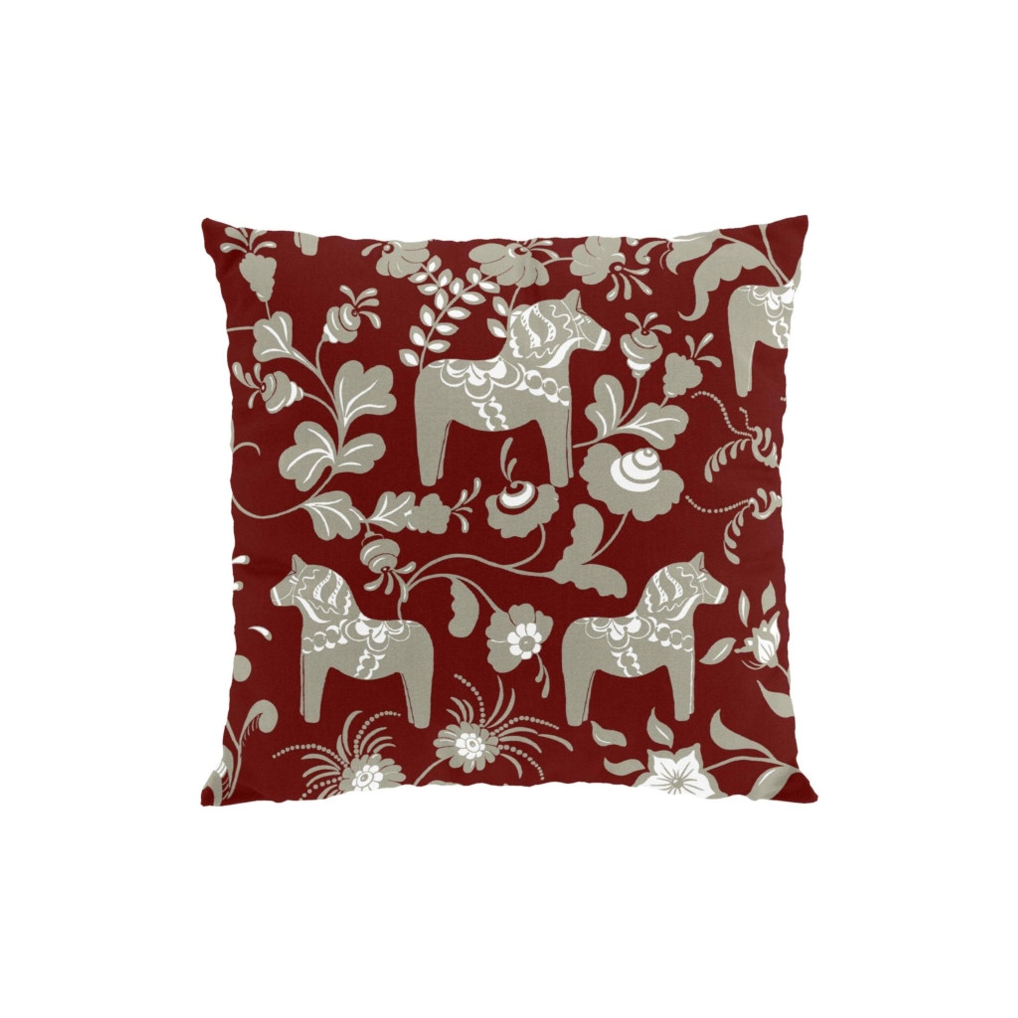 Nusnäs röd kuddfodral från Arvidssons Textil erbjuder ett klassiskt Nusnäs-mönster i röd bakgrund med beige detaljer. Tillverkat i 100% bomull och designat av Carola Bengtsson Malmström för en nordisk, tidlös stil.