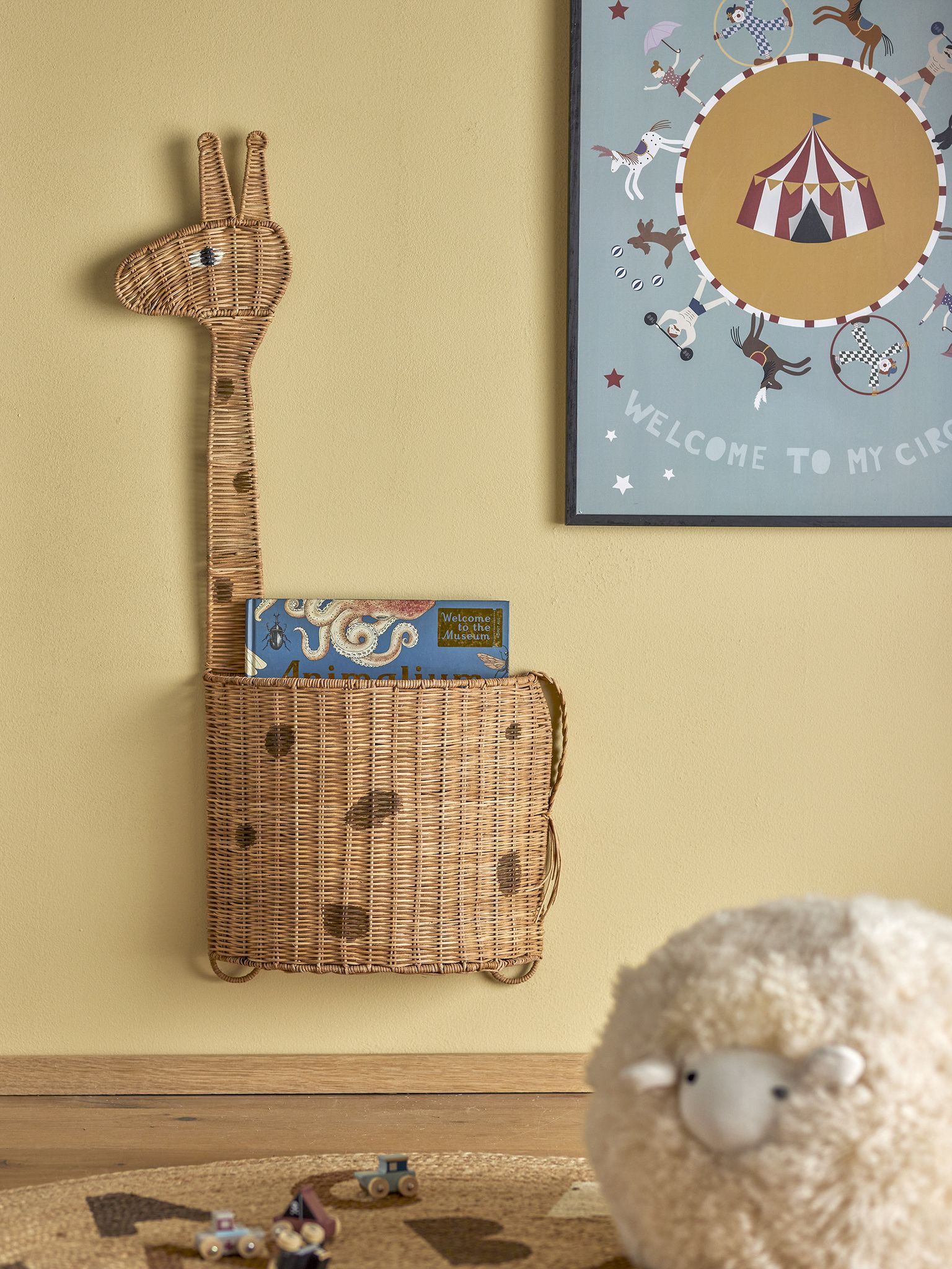 Philine Väggkorg i naturrotting från Bloomingville Mini är en handvävd korg med lång hals, perfekt för smart förvaring och stilren inredning.