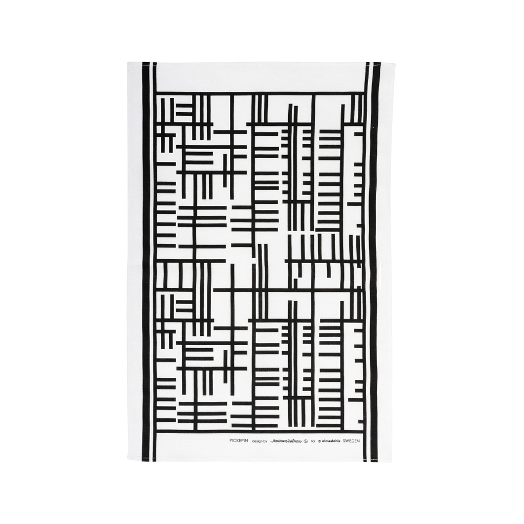 Upptäck kökshandduken Pickepin i svart och vitt, designad av Marianne Westman. Tillverkad i halvlinne för optimal uppsugningsförmåga och hållbarhet.