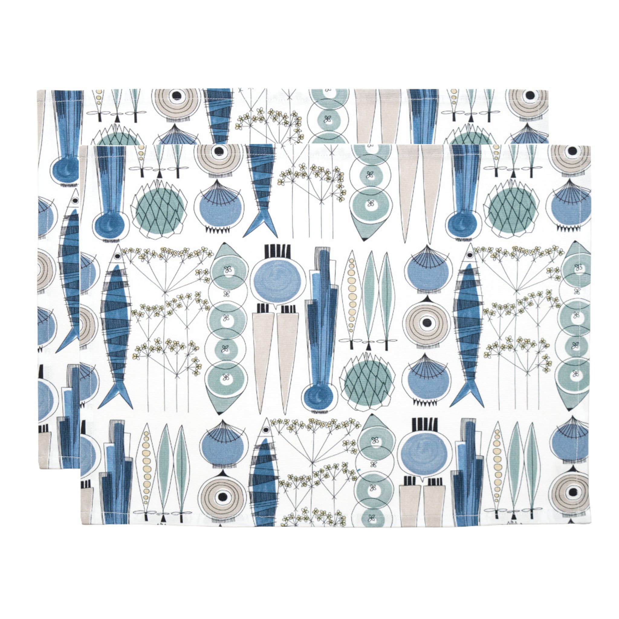Upplev en somrig atmosfär med Picknick bordstablett i blå och beige toner. Detta 2-pack är perfekt för att skapa en inbjudande dukning, oavsett om det är på matbordet, balkongen eller båten.