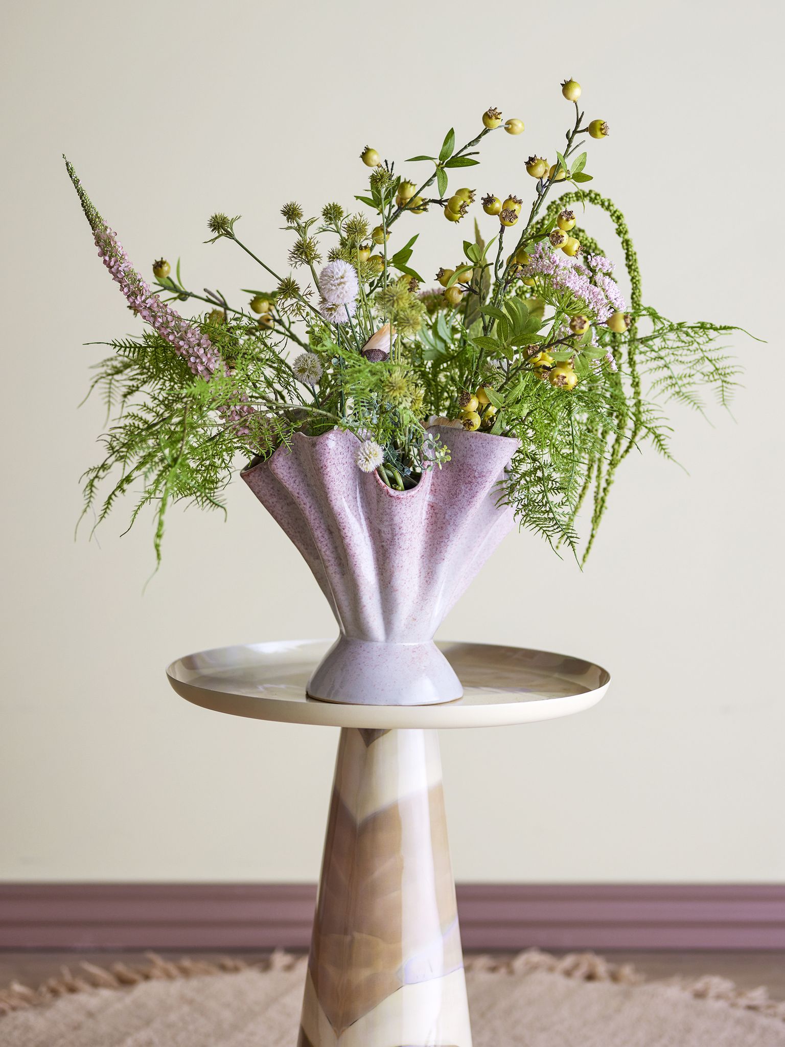Plier vas i rosa stengods, H29 cm från Bloomingville. Snygg, praktisk vas som passar på bord eller fönsterbräda, funkar med snittblommor, håller länge och är bra för din inredning.
