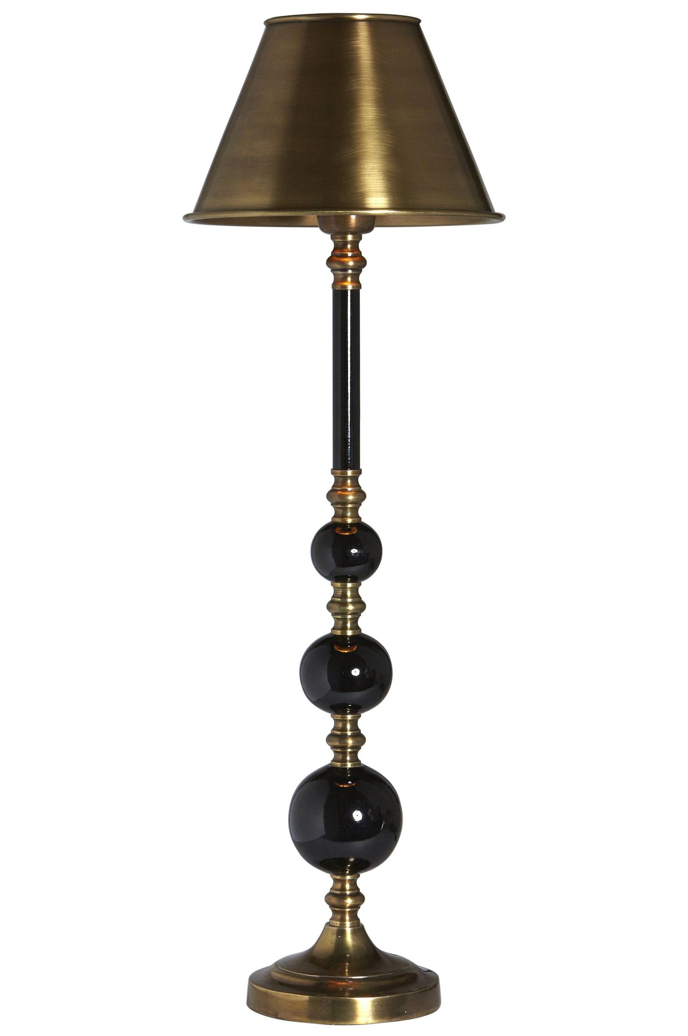 Abbey bordslampfot 60 cm i svart metall med antikmässing och dekorativa kulor. Den snygga, praktiska lampfoten passar på ditt sidobord eller skrivbord, funkar bra och håller länge.