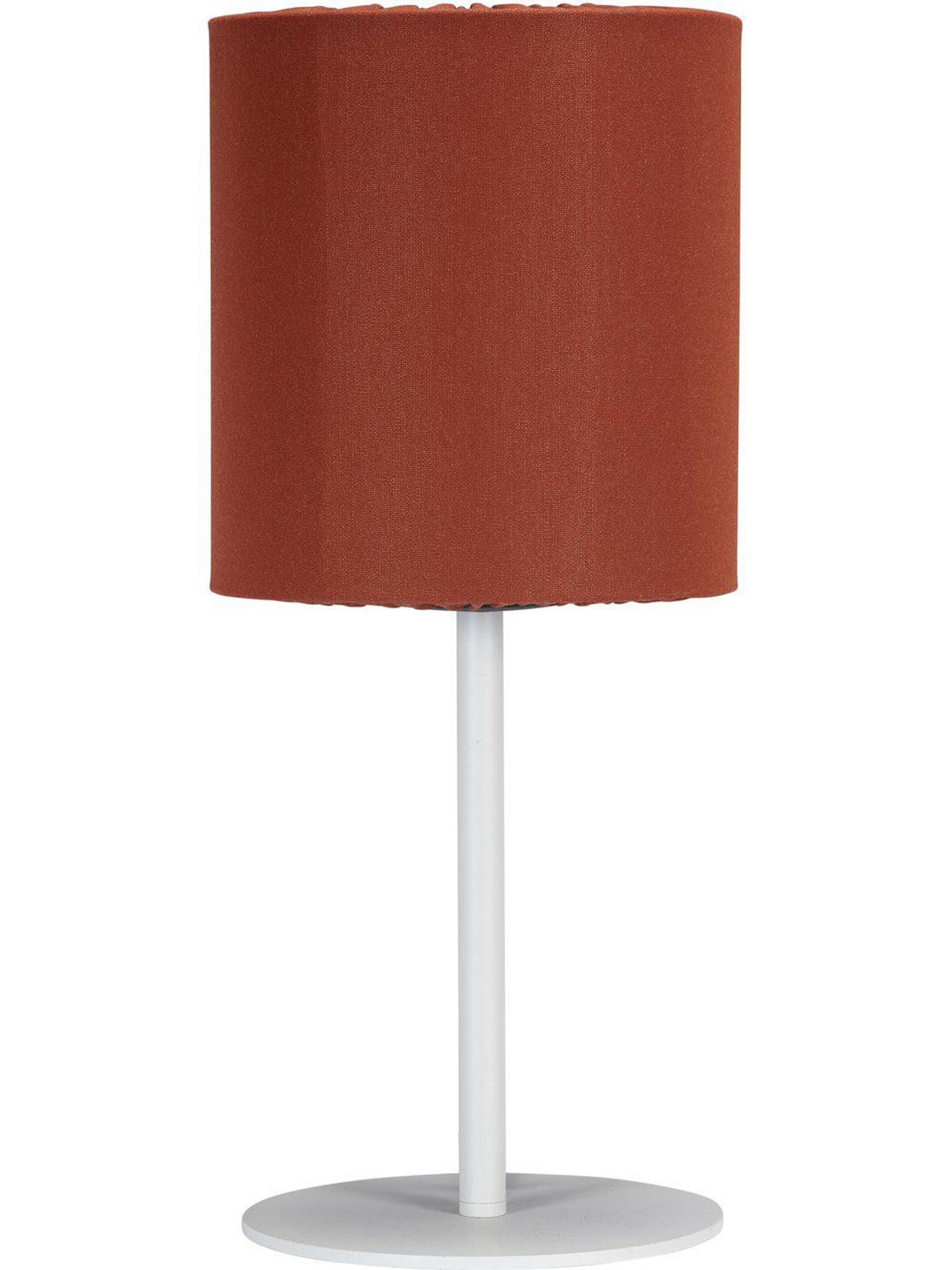 Lampan är tillverkad i metall med rostfinish och har en väderskyddad tygskärm. Höjden är 57 cm och basens mått är 25 x 25 cm, vilket gör den stabil nog för bord och avlastningsytor utomhus. Kabeln på 200 cm ger dig frihet att placera lampan där du behöver ljus — vid matplatsen, läshörnan eller som vägvisare längs en gång.