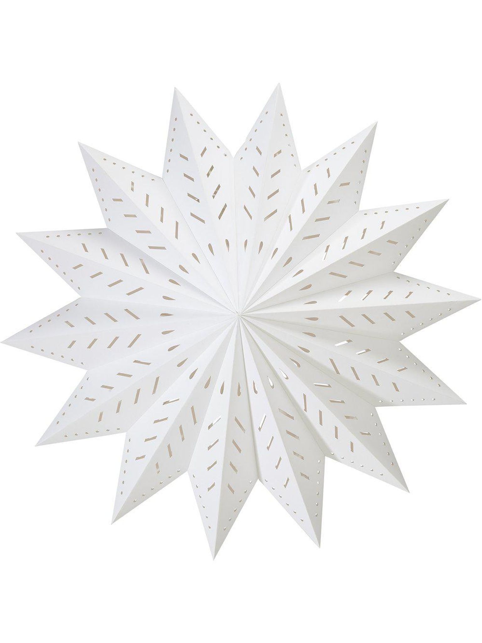 PR Home Alfa julstjärna 50 cm i vitt papper med stansade hål, julbelysning som kräver E14 sladdställ. Passar ditt fönster eller rum, ger snygg belysning, är praktisk, funkar bra och håller länge.