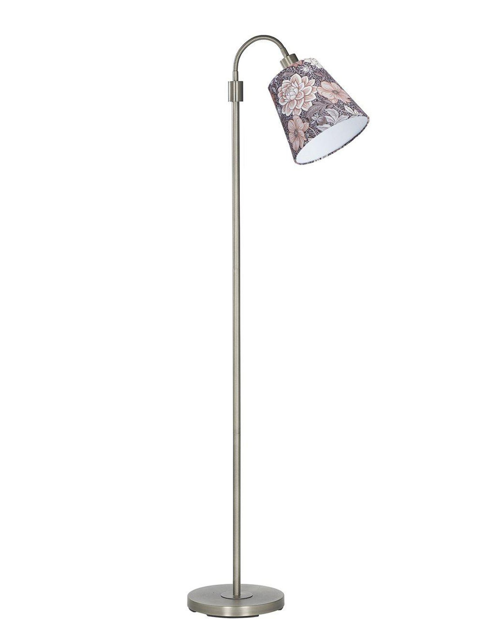 Upptäck PR Home Amy Flex 1 Krom Dahlia Brun, en elegant golvlampa som kombinerar stil och funktionalitet. Med en justerbar arm och en vacker lampskärm i brun/puderrosa, prydd med handmålade dahlior av designern Jenny Hahne Gadd, blir denna lampa en perfekt inredningsdetalj i ditt hem.