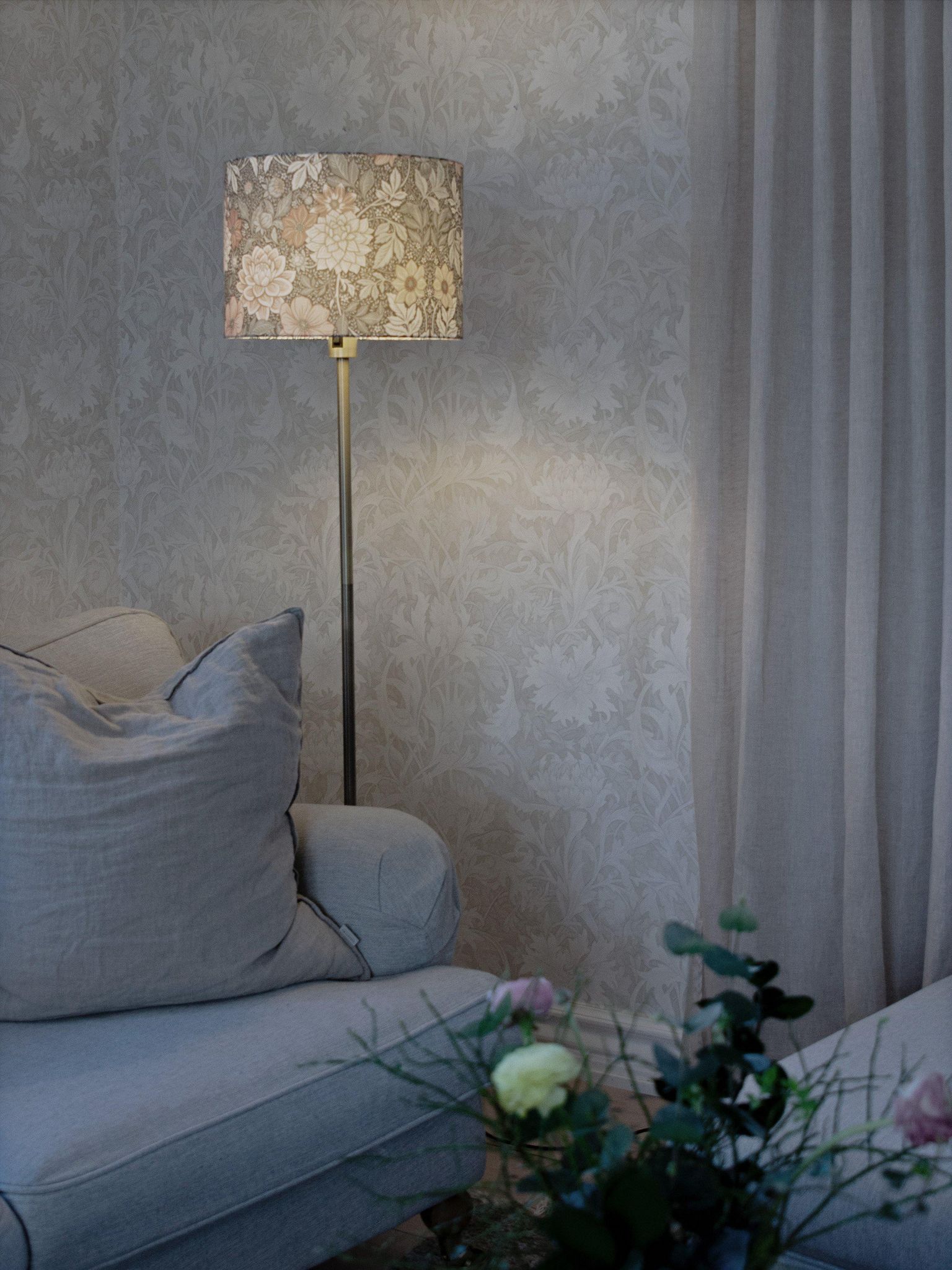 Upptäck PR Home Amy Golv i mässing med den eleganta lampskärmen i Boråstapeters mönster Dahlia. Denna stiliga golvlampa är perfekt för att skapa en varm och inbjudande atmosfär i ditt hem.
