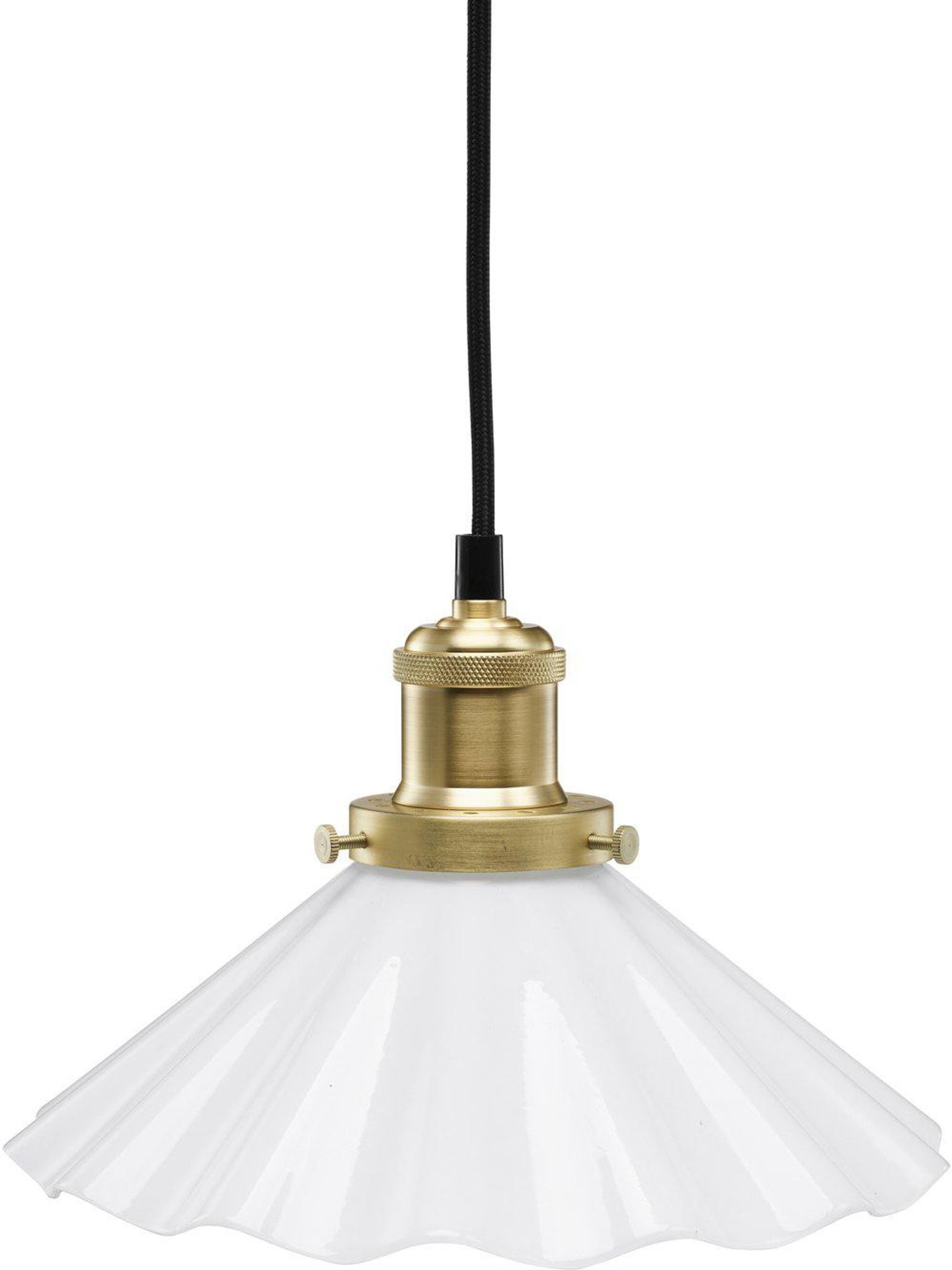 PR Home August fönsterlampa, 25 cm i opalvitt glas med svart textilkabel och E27-sockel. Den passar över din köksö eller i små utrymmen där den ger praktisk, snygg belysning som håller länge och funkar bra.