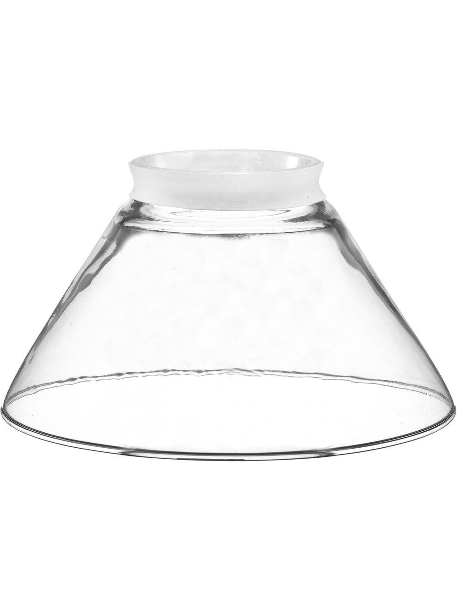 Transparent lampskärm i glas, 9 cm hög och 15 cm bred. En snygg och praktisk skärm som passar din lampa, funkar bra i vardagsrum eller sovrum och håller länge.